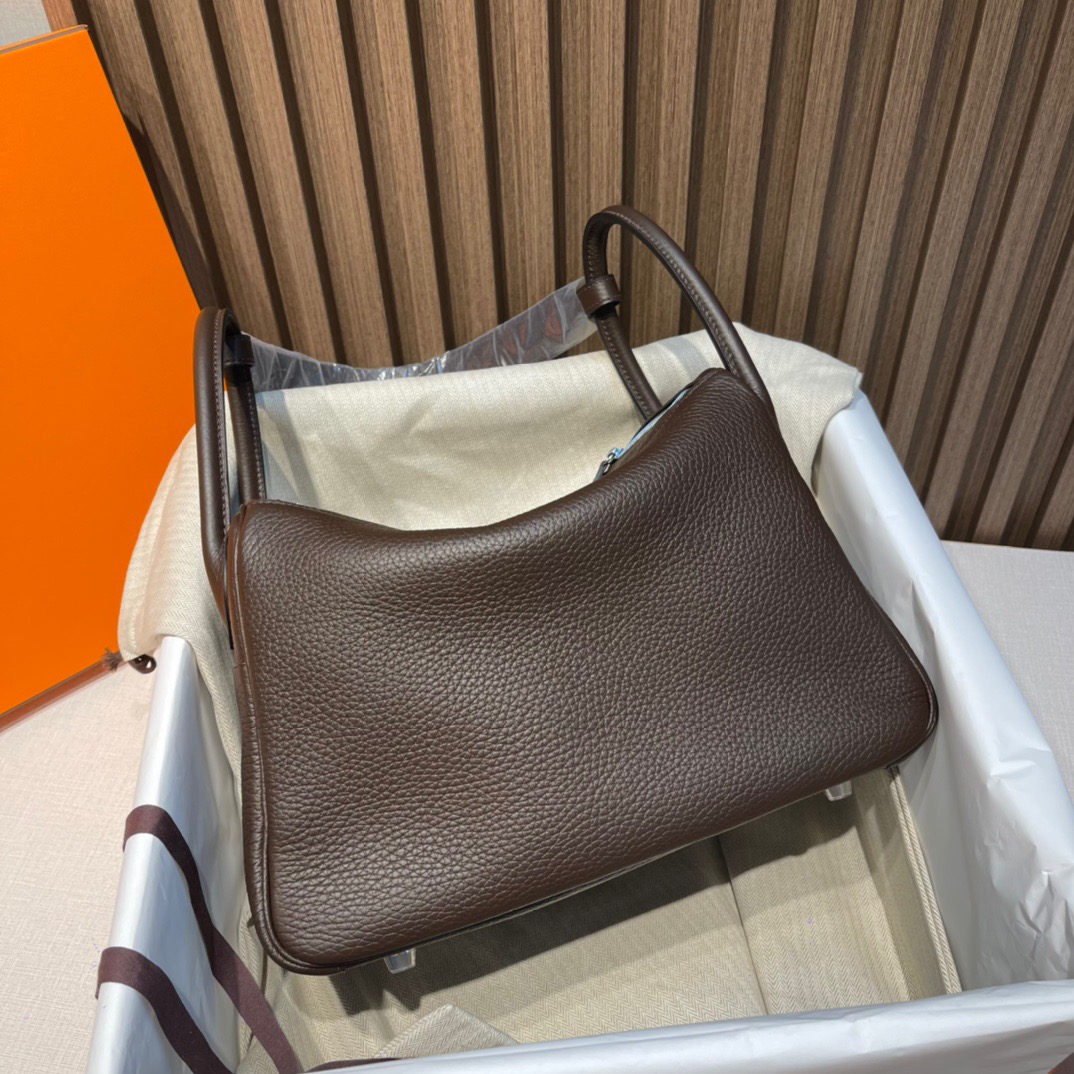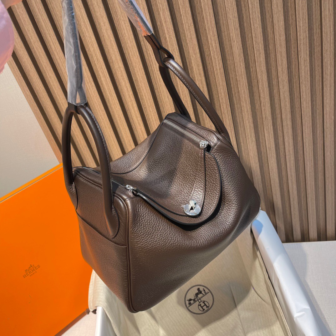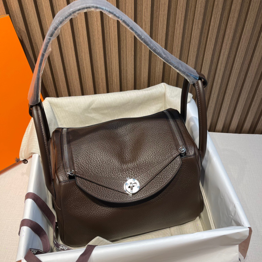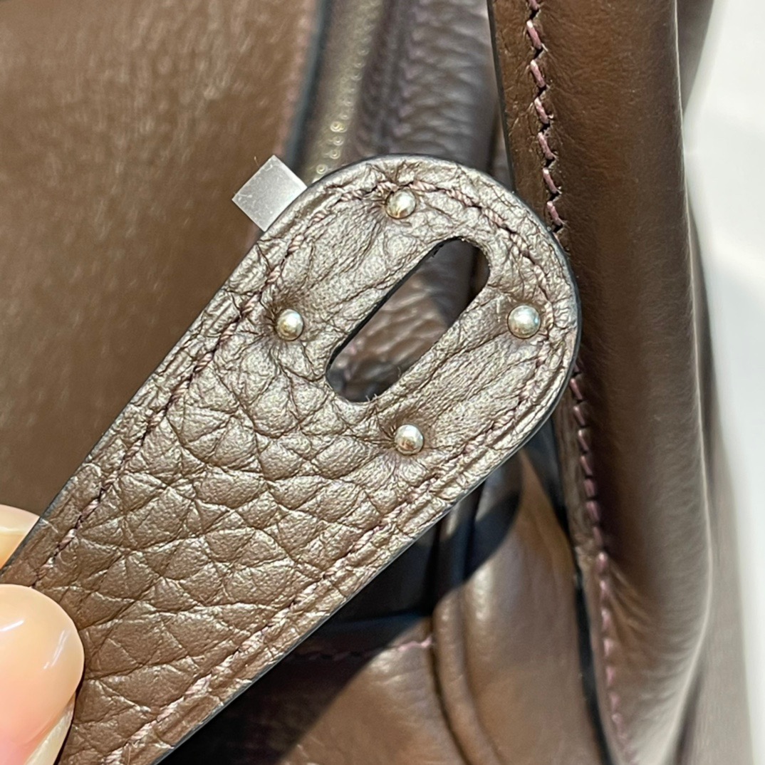 Lindy 30cm Clemence Leather 46 Ebony (Ebene) Color varies in different light, similar to chocolate, sometimes looks like dark brown, sometimes close to black.