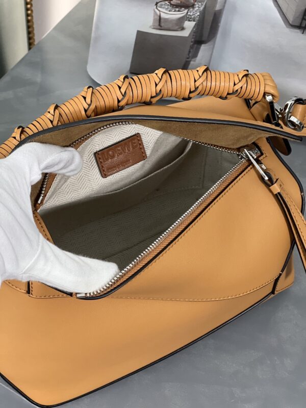 Unique geometric lines, with cover stitching edge, the weaving process of the handle shows the ingenuity of the Loєwє family, and the innovation in color matching is also more intellectual, tactful, and expresses art to the fullest
