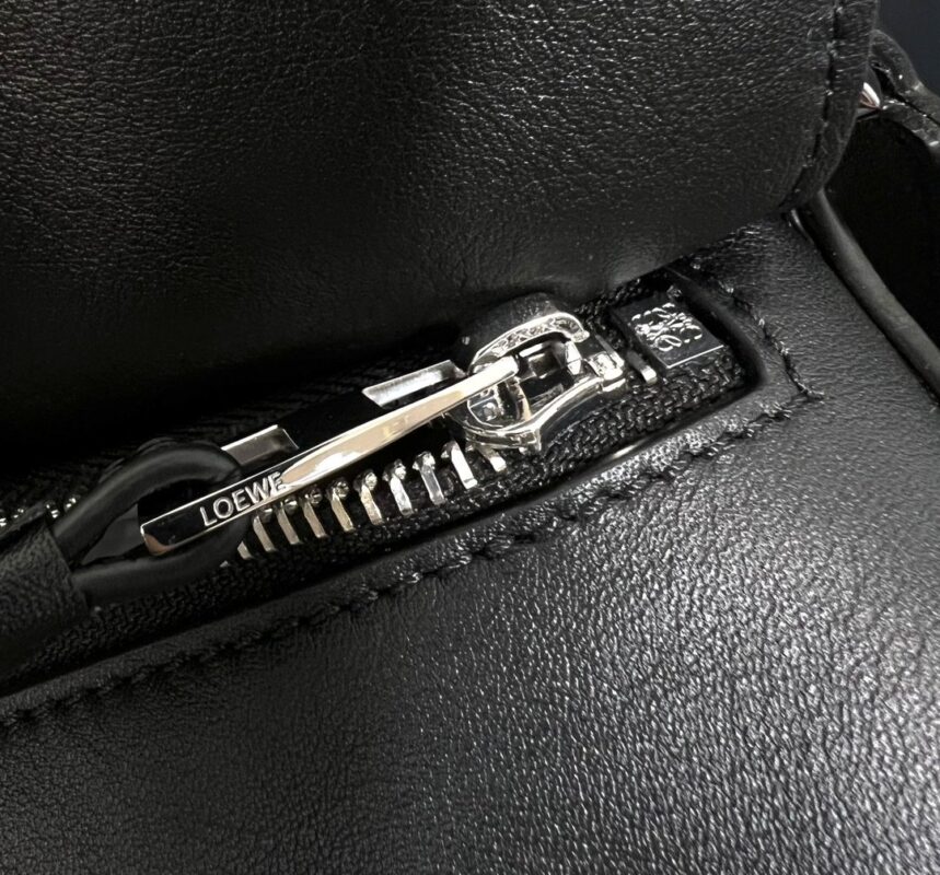 Herringbone cotton-canvas lining, Anagram compressed air accents, two internal slip compartments, rear zip pocket