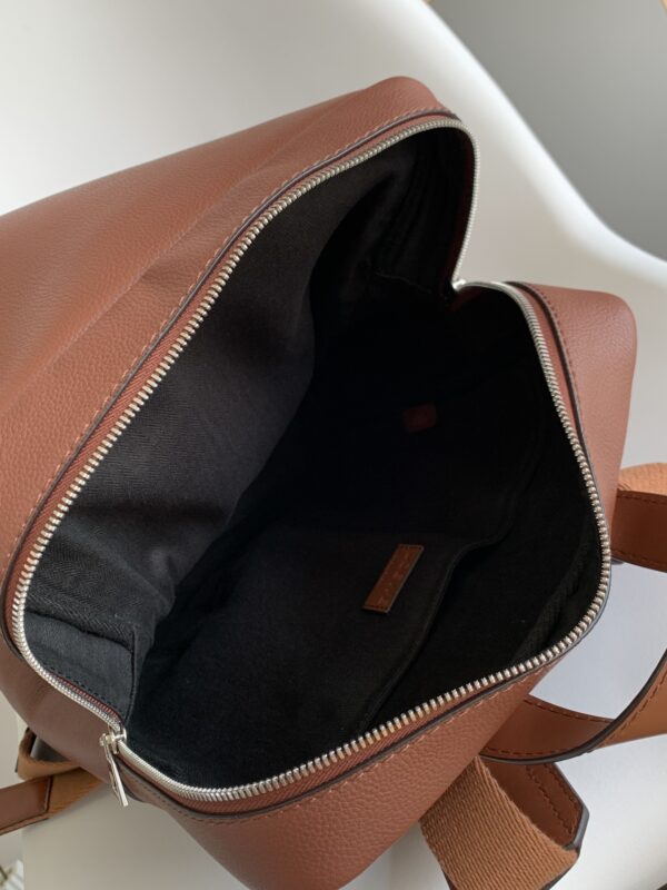 Loewe New Backpack The Military Backpack is a roomy and versatile backpack with a main compartment and an additional compartment under a fold-over flap, secured by a magnetic closure and An additional pin buckle closure and padded shoulder straps are adjustable with metal sliders. Carried on the shoulder, on the shoulder or by hand, it features a large internal pocket for a laptop and is lined in herringbone cotton canvas with embossed Anagram. Size: 39*28.5*11cm .
