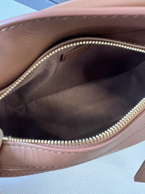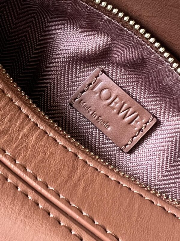 Loewe Satin Cow Leather Puzzle Bag The cuboid shape and precise cutting techniques create Puzzle’s unique geometric lines. This mini version is crafted in satin calfskin with tonal hardware and features a detachable shoulder strap with Loewe embossing on one side and Loewe embossing on the other. Decorated with Anagram. Carry across the body, over the shoulder, by hand or by the top handle. Lining Anagram embossed same color hardware. Size: 17.5*7.5*11cm