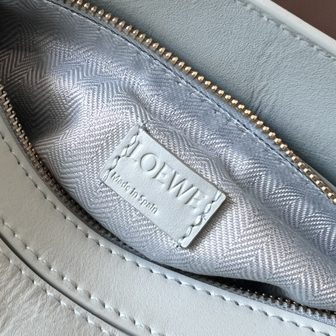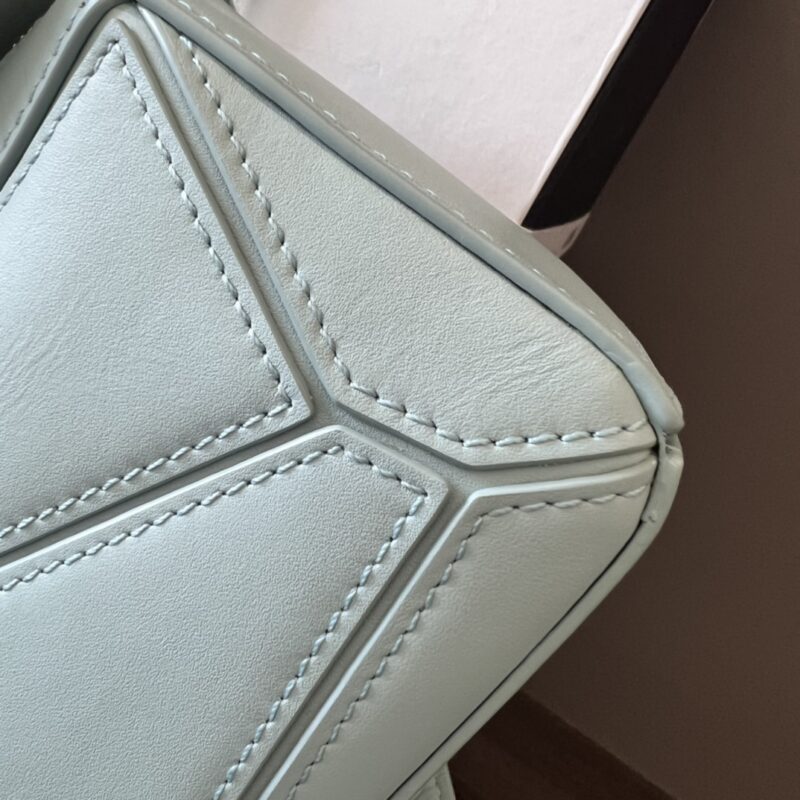 Loewe Satin Cow Leather Puzzle Bag The cuboid shape and precise cutting techniques create Puzzle’s unique geometric lines. This mini version is crafted in satin calfskin with tonal hardware and features a detachable shoulder strap with Loewe embossing on one side and Loewe embossing on the other. Decorated with Anagram. Carry across the body, over the shoulder, by hand or by the top handle. Lining Anagram embossed same color hardware. Size: 17.5*7.5*11cm