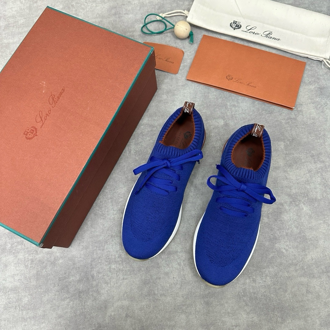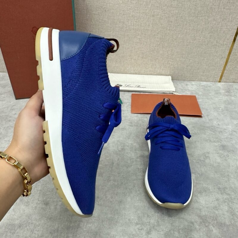 The upper of this sneaker is made of Wish double-layer knitting with a special process. The ribbed elastic shoe mouth is matched with Kummel color trim. The white outsole is matched with the Kummel color sole, printed with the Loro Piana initials classic pattern to create a non-slip effect. The Kummel color pull ring has the Loro Piana logo and is decorated with the same color calfskin. It is very light and comfortable, suitable for leisure and relaxation, creating a casual look. Let elegance and comfort spread on the soles of your feet, as light as the wind. 2024