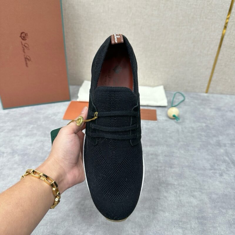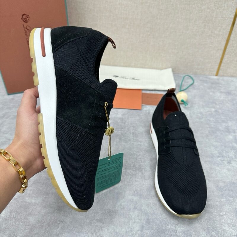 The upper of this sneaker is made of Wish double-layer knitting with a special process. The ribbed elastic shoe mouth is matched with Kummel color trim. The white outsole is matched with the Kummel color sole, printed with the Loro Piana initials classic pattern to create a non-slip effect. The Kummel color pull ring has the Loro Piana logo and is decorated with the same color calfskin. It is very light and comfortable, suitable for leisure and relaxation, creating a casual look. Let elegance and comfort spread on the soles of your feet, as light as the wind.