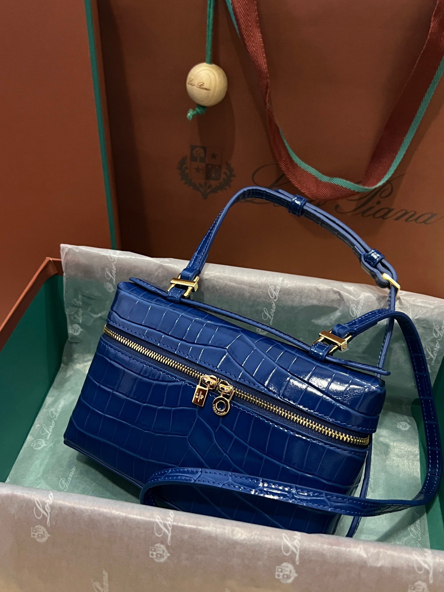 Craftskin embossed crocodile pattern. Two-way zipper closure, simple and versatile mainly. Super hot and practical small bag size: 19* 11*6.5 gold buckle