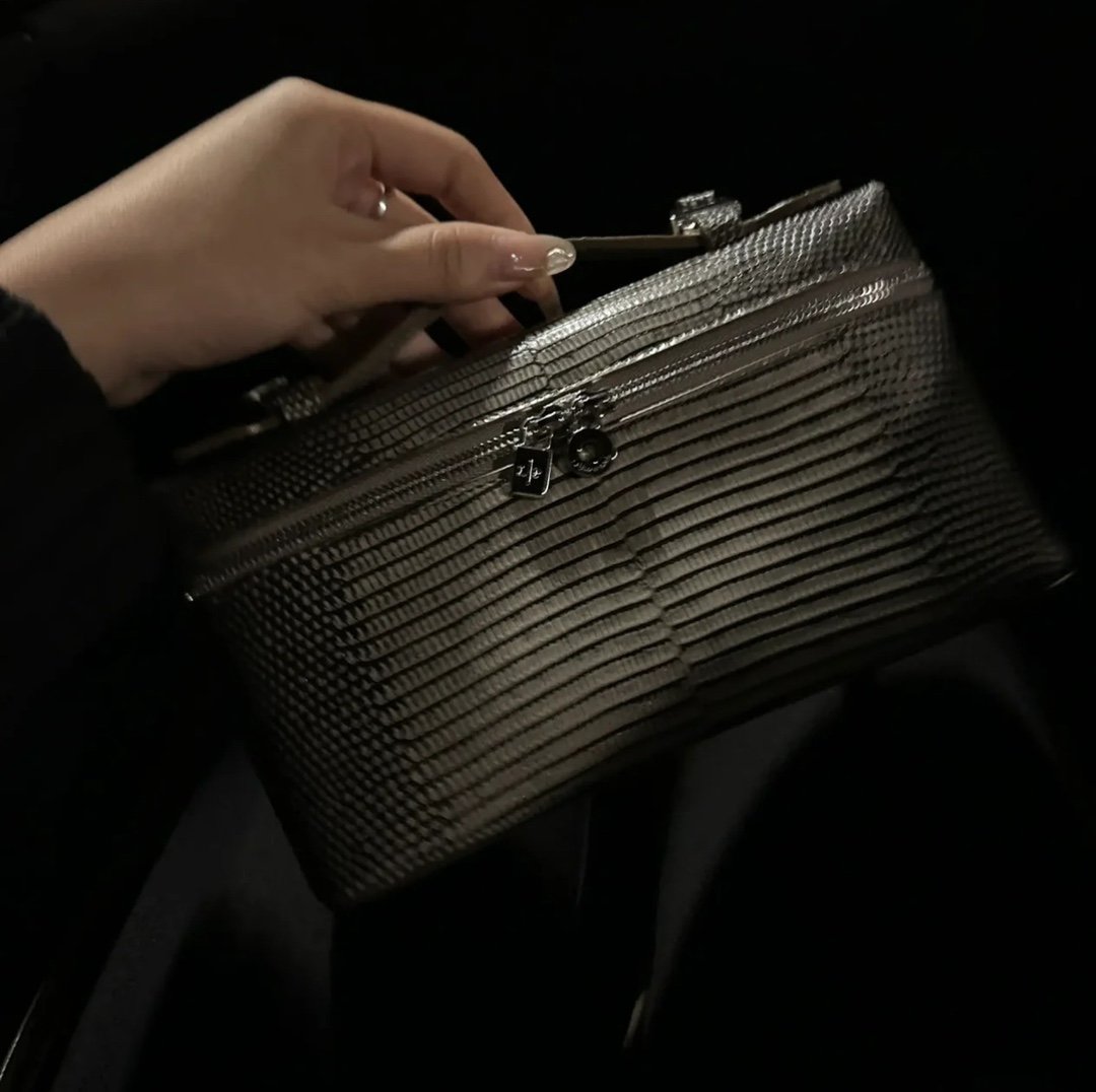 Using French imported cowhide with lizard pattern. Super A oil edge polishing. Imported sheepskin inside, hardware is also authentic Once the mold is opened. It is made of stainless steel that does not fade. 19*11*6.5. Gold and silver buckles