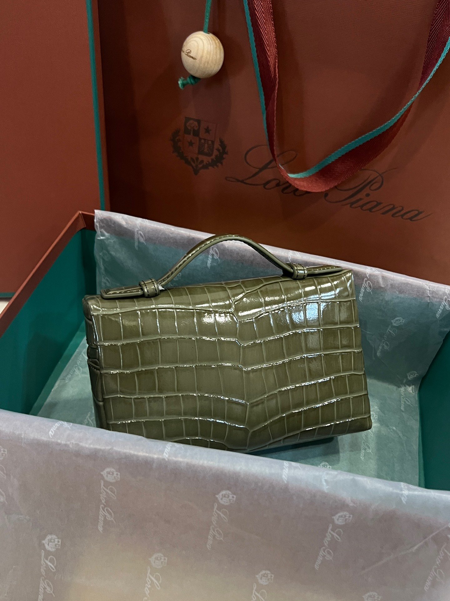 Loro Piana L19 Olive Green Embossed Crocodile Pattern GHW