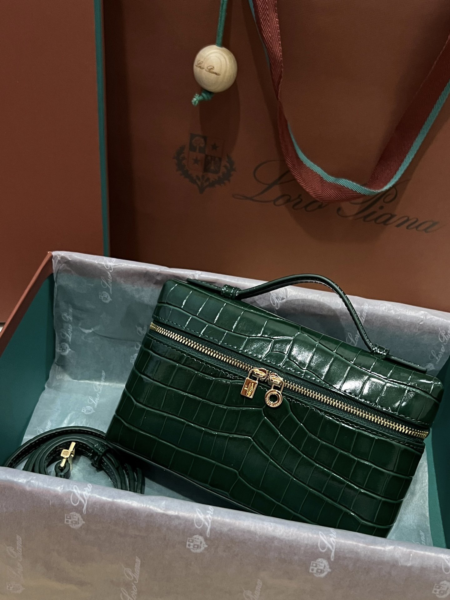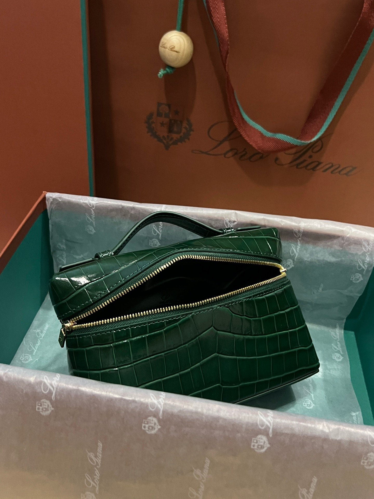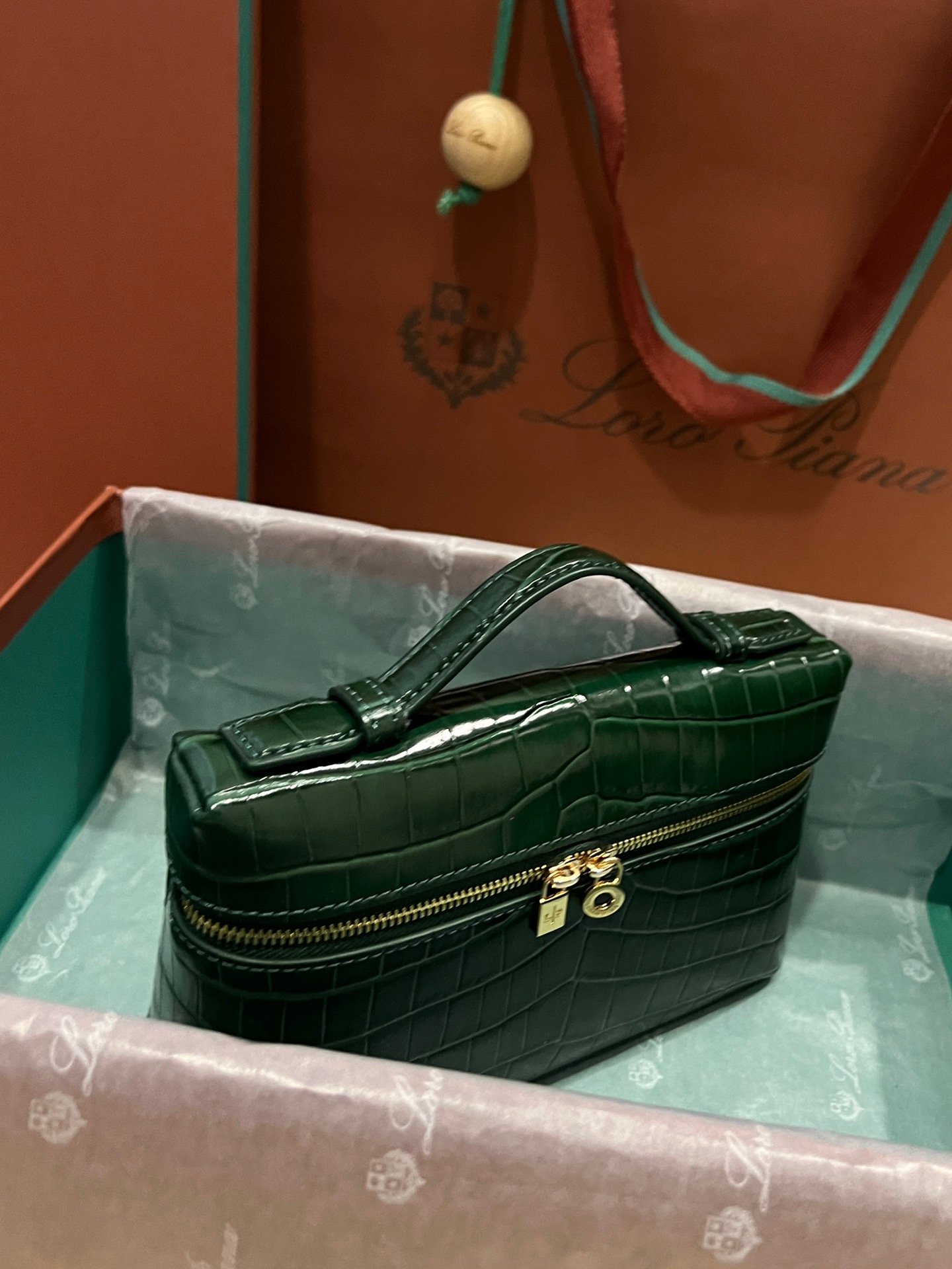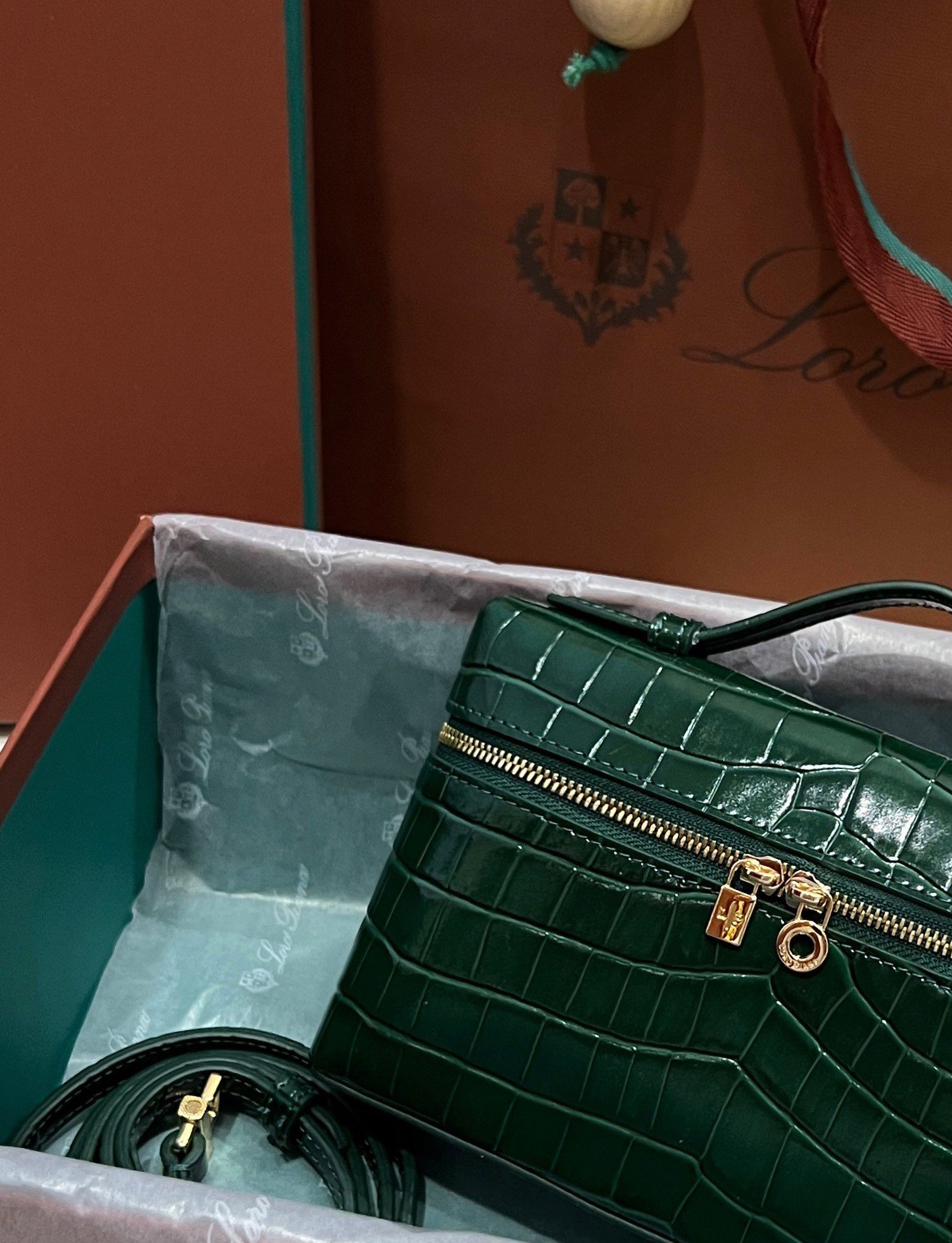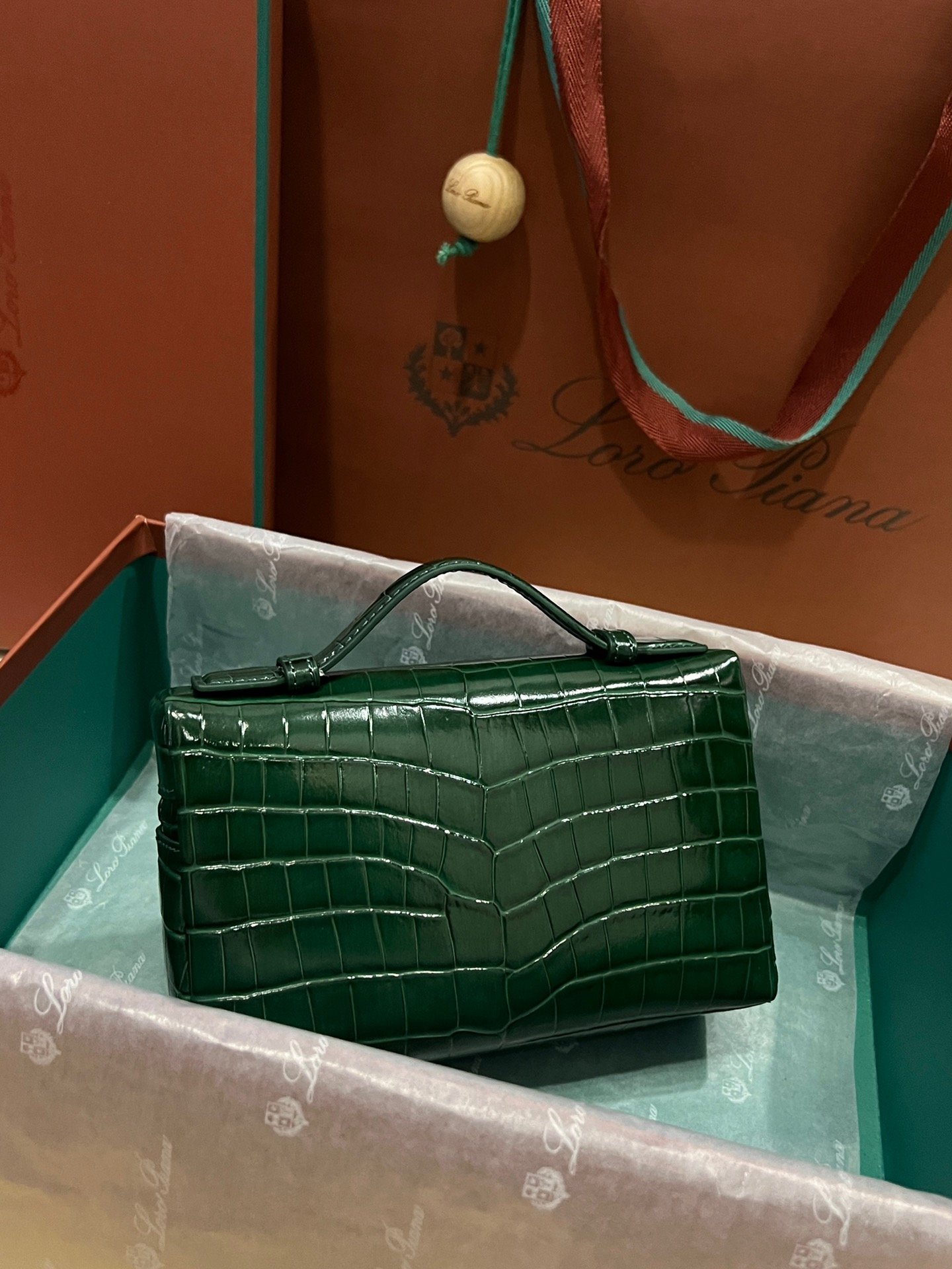 Loro Piana L19 Pine Green Embossed Crocodile Pattern GHW