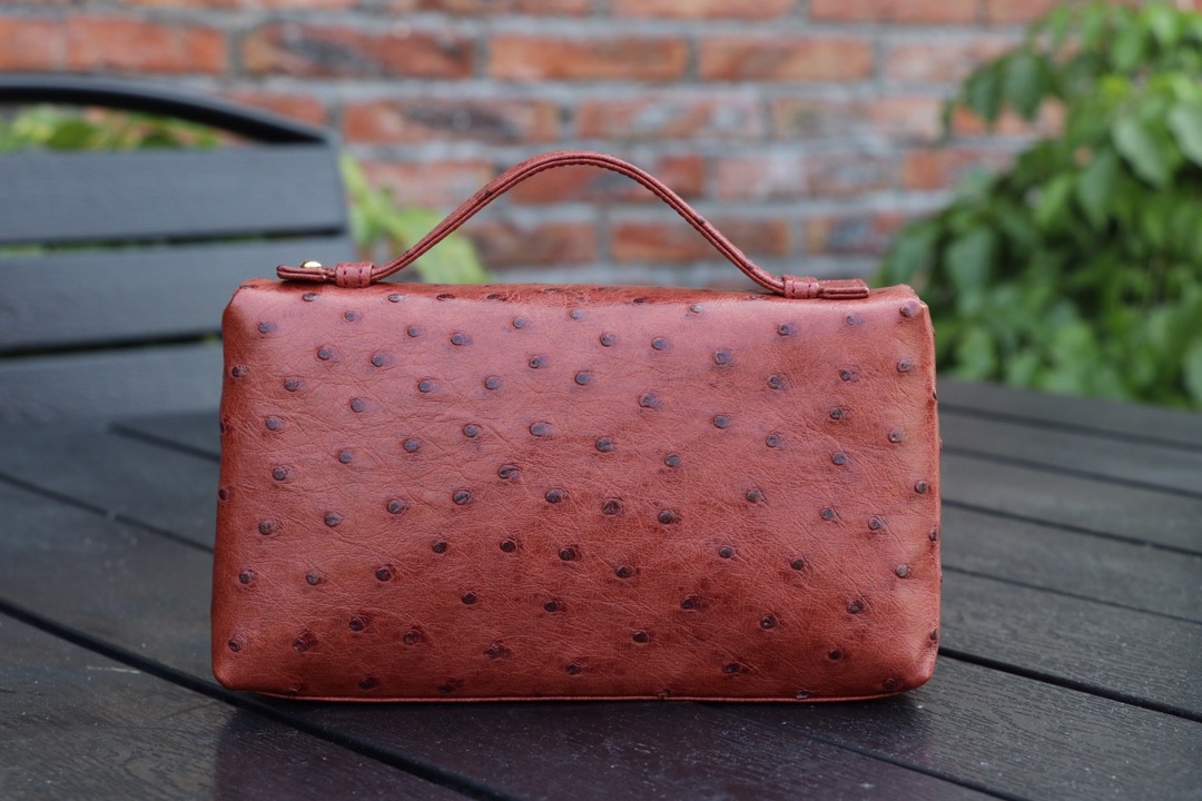 Loro Piana Light Maroon L19 Pouch in Ostrich