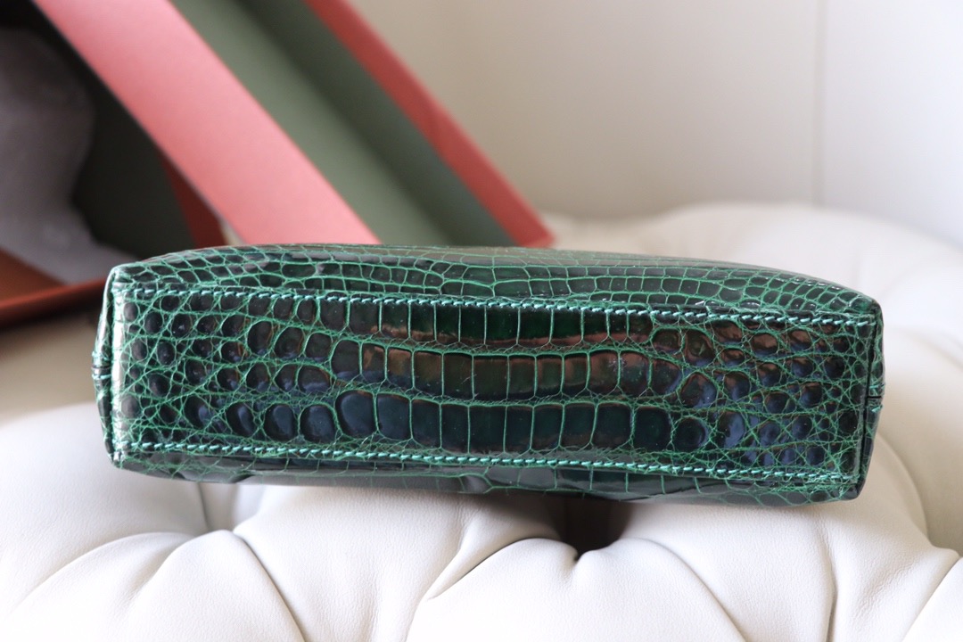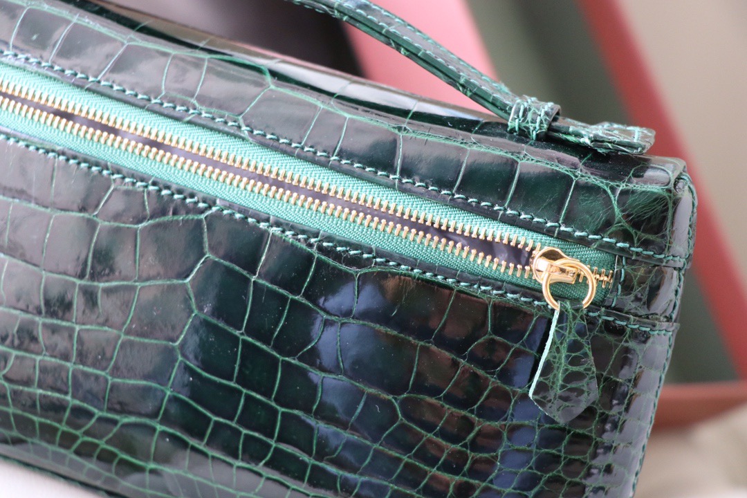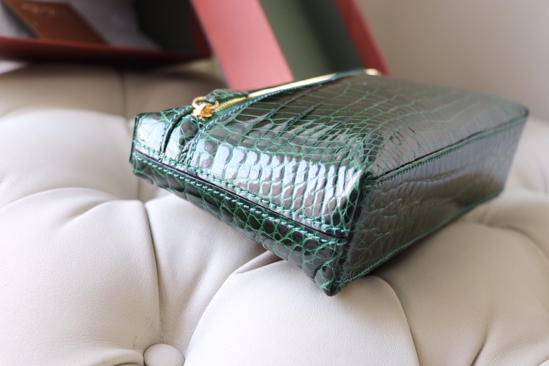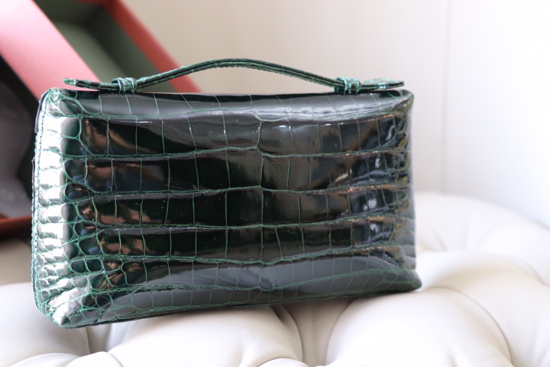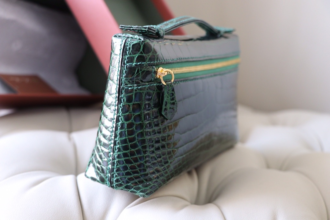 Loro Piana Malachite Green L19 Pouch in Glossy Crocodile Pattern