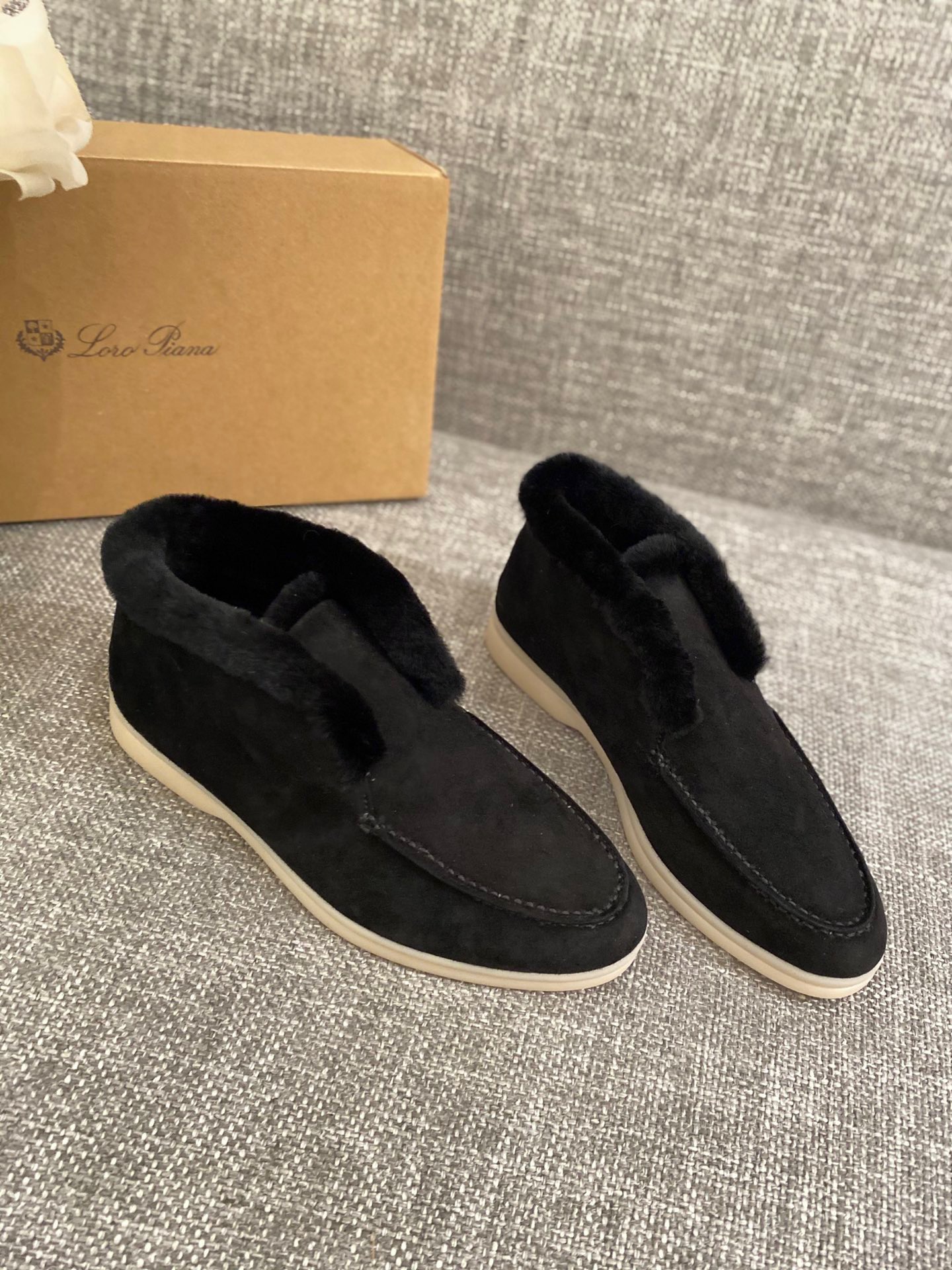 Loro Piana Gang Suede beaver hair. Leather midsole latex outsole. Size: 35-40 (41 customized, non-refundable)