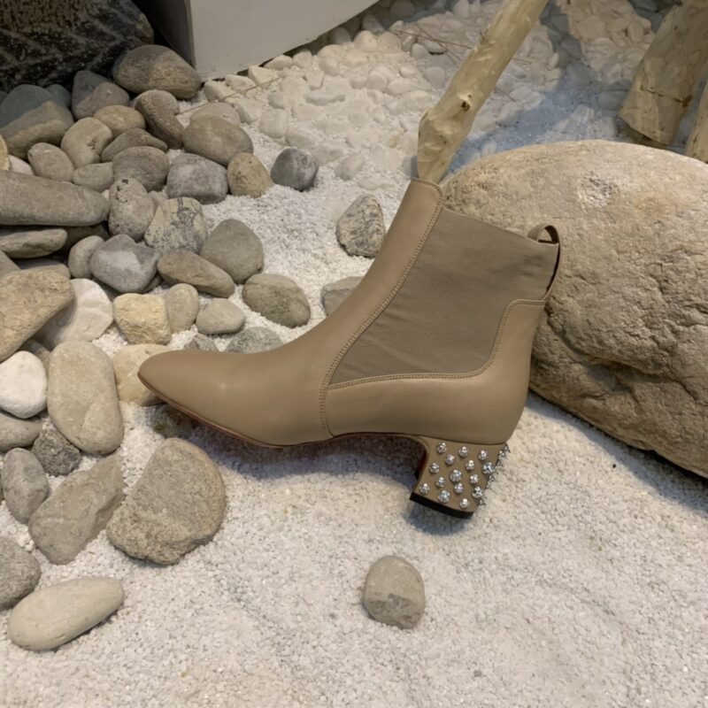 🆑 Generation *Grade*‼ ️ (calfskin) Square heel rivet Chelsea ankle boots 👢 (customized non-refundable) The original 1:1 debugging last shape is perfect and slender with full sense of lines. With high-end gift box packaging, high-end atmosphere, more distinguished…… 【Material】 Imported lamb Exclusive open mold ABS material heel The inside is made of Italian imported mixed sheepskin lining Original imported Italian AR1 top leather outsole Size: 34-41 (34.40.41. Customized, non-refundable) Color: Black, Khaki, Ivory Heel height: 5.5cm