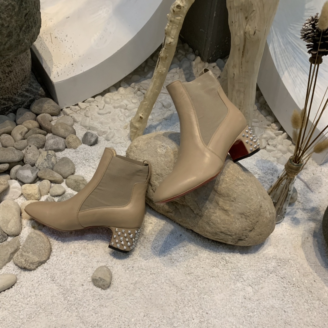 🆑 Generation *Grade*‼ ️ (calfskin) Square heel rivet Chelsea ankle boots 👢 (customized non-refundable) The original 1:1 debugging last shape is perfect and slender with full sense of lines. With high-end gift box packaging, high-end atmosphere, more distinguished…… 【Material】 Imported lamb Exclusive open mold ABS material heel The inside is made of Italian imported mixed sheepskin lining Original imported Italian AR1 top leather outsole Size: 34-41 (34.40.41. Customized, non-refundable) Color: Black, Khaki, Ivory Heel height: 5.5cm