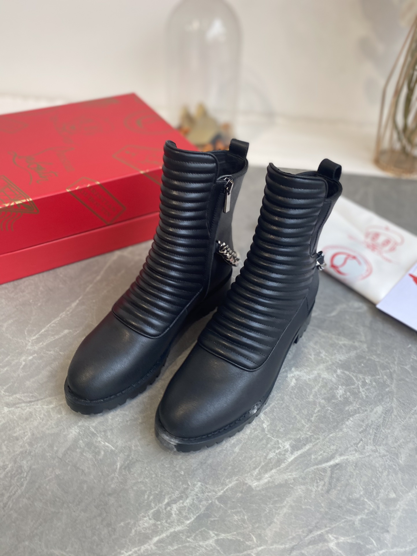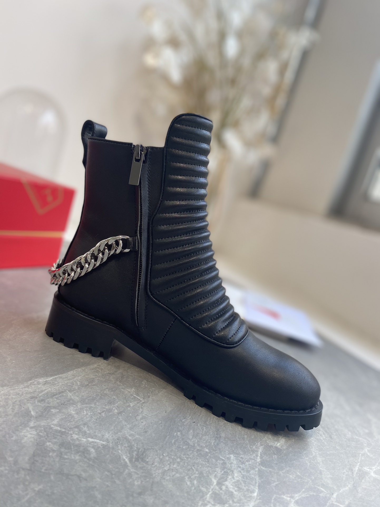 🆑 Generation *Grade*‼ ️ (short) Heavy Industry Martin Boots👢 The original 1:1 debugging last shape is perfect and slender with full sense of lines. With high-end gift box packaging, high-end atmosphere, more distinguished…… 【Material】 Imported calfskin with electroplated hardware chain⛓ The inner pads are all sheepskin, and the two-color tpu outsole Size: 35-43 (40.41.42.43 customized, non-refundable) Colour: Black Heel height: 3cm
