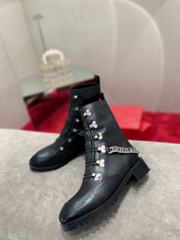 🆑 Generation *Grade*‼ ️ Heavy Industry Martin Boots👢 The engraved thick bottom design adds a strong aura, and the chain ornaments move with you, showing your self-willedness. The original 1:1 debugging last shape is perfect and slender with full sense of lines. With high-end gift box packaging, high-end atmosphere, more distinguished…… 【Material】 Imported stone pattern cowhide The inner pads are all sheepskin, and the two-color tpu outsole Size: 34-43 (34.40.41.42.43 custom-made, non-refundable) Colour: Stone Calfskin Heel height: 3cm