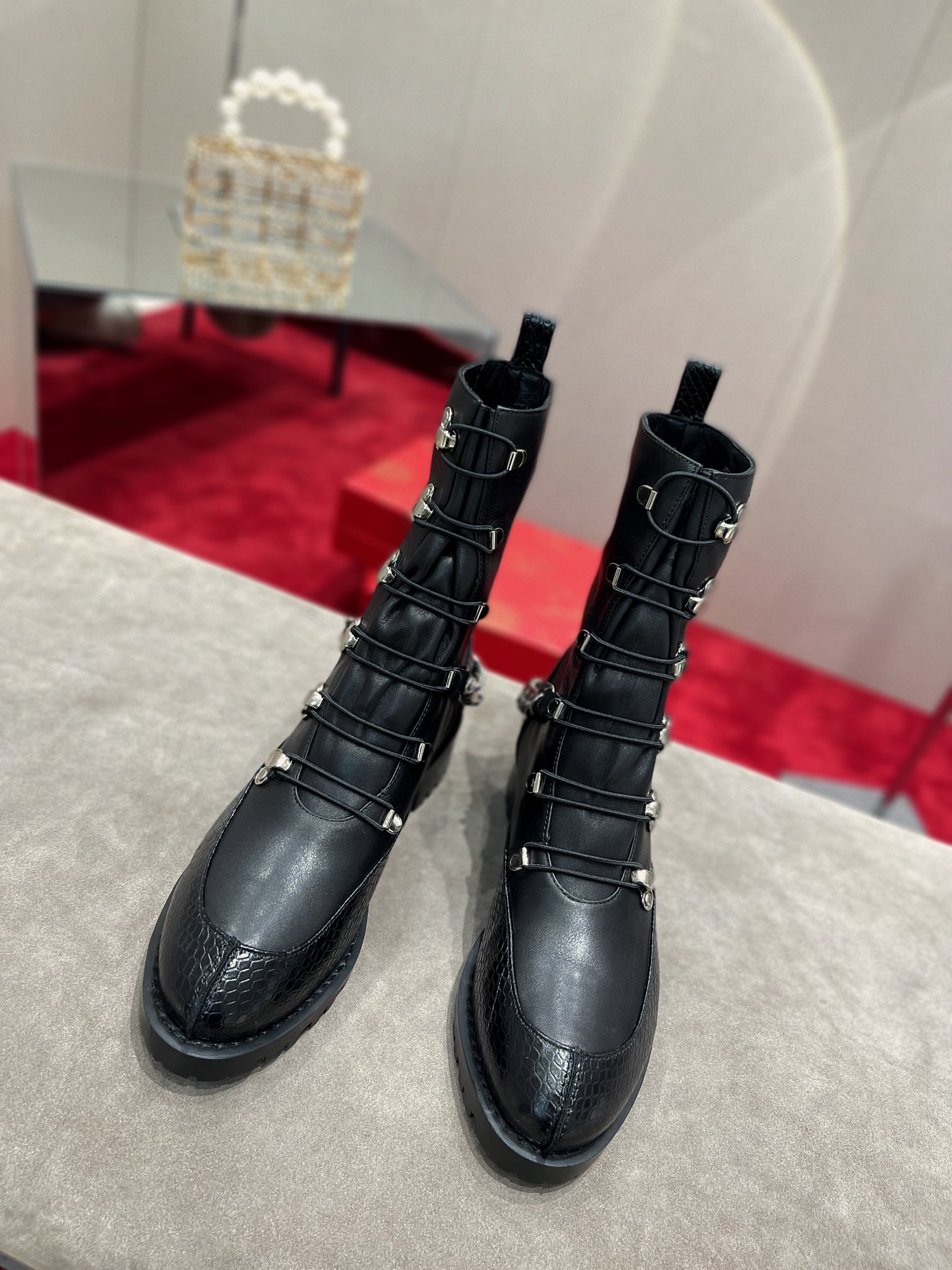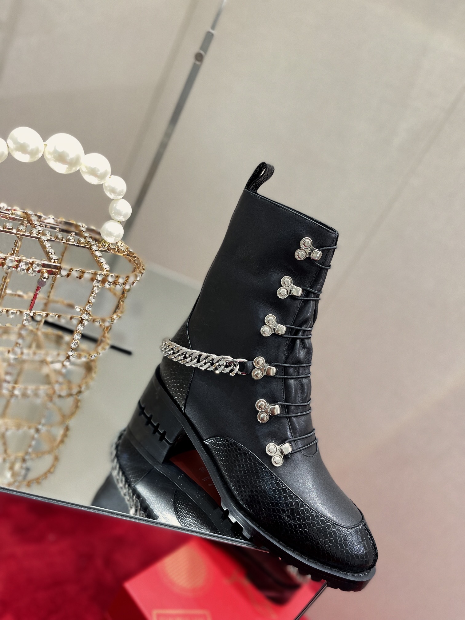 🆑 Generation *Grade*‼ ️ Heavy Industry Martin Boots👢 The engraved thick bottom design adds a strong aura, and the chain ornaments move with you, showing your self-willedness. The original 1:1 debugging last shape is perfect and slender with full sense of lines. With high-end gift box packaging, high-end atmosphere, more distinguished…… 【Material】 Imported stone pattern cowhide The inner pads are all sheepskin, and the two-color tpu outsole Size: 34-43 (34.40.41.42.43 custom-made, non-refundable) Colour: Stone Calfskin Heel height: 3cm