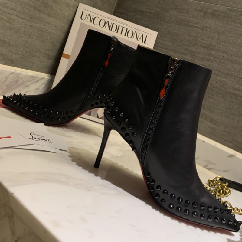 🆑 Generation *Grade*‼ ️ (studded calfskin) Upgraded version of classic ankle boots 👢 After three months of careful debugging by a capable pattern maker, the head shape and pattern lines that are exactly the same as the original product are finally made 🌸🌸 Different from the shoddy manufacturing methods of ordinary small factories, the details determine the quality! The original 1:1 debugging last shape is perfect and slender with full sense of lines. With high-end gift box packaging, high-end atmosphere, more distinguished…… 【Material】 Made of calfskin ➕ rivets The size of the original molded alloy steel heel is the same as the original The inside is made of Italian imported mixed sheepskin lining Original imported Italian AR1 top leather outsole Colour: Black Size: 34-41 (34.40.41. Customized, non-refundable) Heel height: 10cm.8.5cn