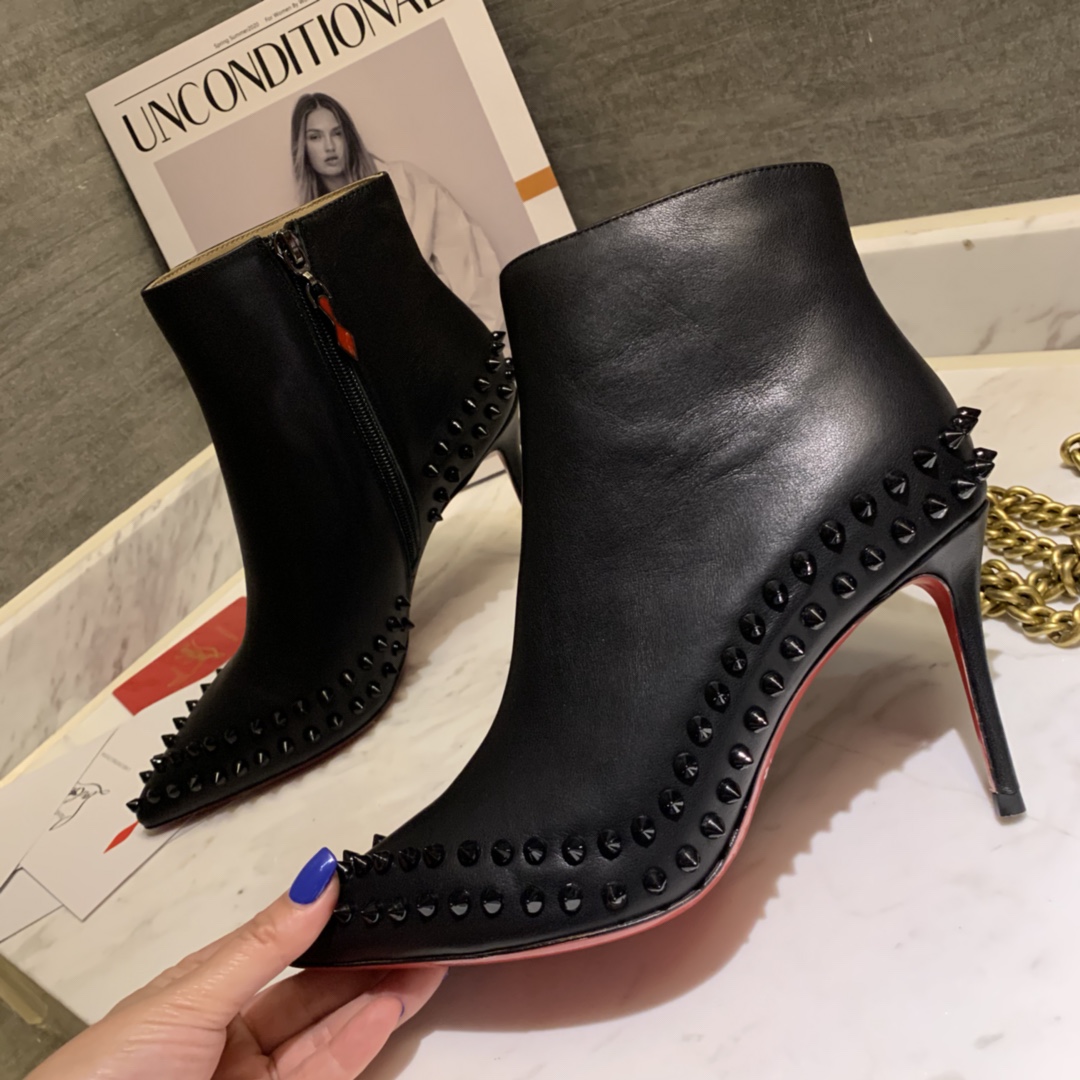 🆑 Generation *Grade*‼ ️ (studded calfskin) Upgraded version of classic ankle boots 👢 After three months of careful debugging by a capable pattern maker, the head shape and pattern lines that are exactly the same as the original product are finally made 🌸🌸 Different from the shoddy manufacturing methods of ordinary small factories, the details determine the quality! The original 1:1 debugging last shape is perfect and slender with full sense of lines. With high-end gift box packaging, high-end atmosphere, more distinguished…… 【Material】 Made of calfskin ➕ rivets The size of the original molded alloy steel heel is the same as the original The inside is made of Italian imported mixed sheepskin lining Original imported Italian AR1 top leather outsole Colour: Black Size: 34-41 (34.40.41. Customized, non-refundable) Heel height: 10cm.8.5cn