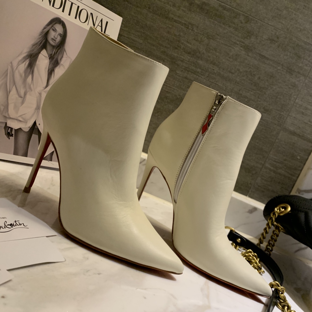 🆑 Generation *Grade*‼ ️ Off-white leather boots Upgraded version of classic ankle boots 👢 After three months of careful debugging by a capable pattern maker, the head shape and pattern lines that are exactly the same as the original product are finally made 🌸🌸 Different from the shoddy manufacturing methods of ordinary small factories, the details determine the quality! The original 1:1 debugging last shape is perfect and slender with full sense of lines. With high-end gift box packaging, high-end atmosphere, more distinguished…… 【Material】 Imported calfskin The size of the original molded alloy steel heel is the same as the original The inside is made of Italian imported mixed sheepskin lining Original imported Italian AR1 top leather outsole Size: 34-42 (34.40.41.42 custom-made, non-refundable) Color:Black.Grey.Off-White.Brown. Heel height: 10cm. 8.5cm