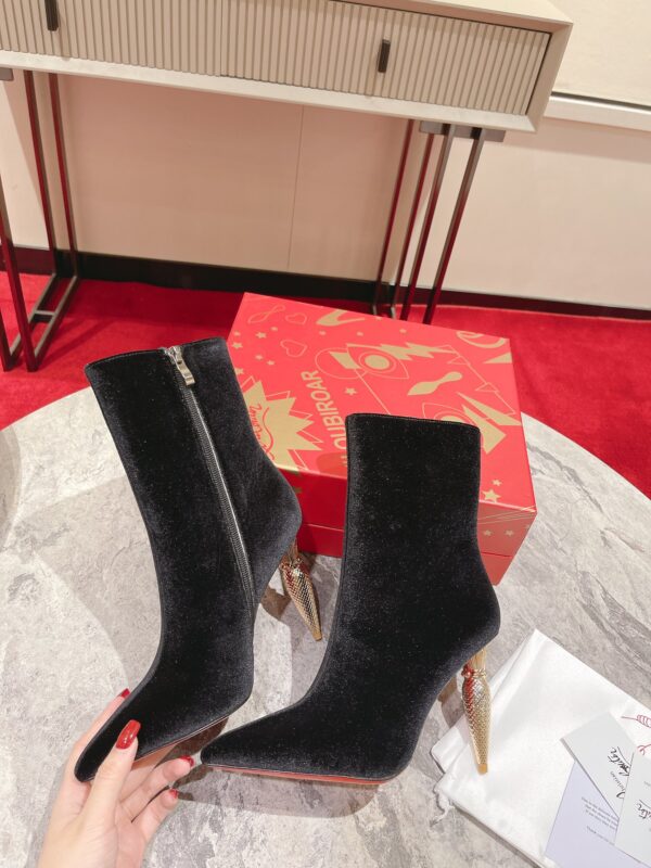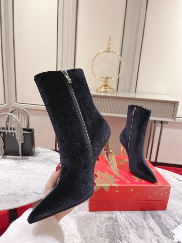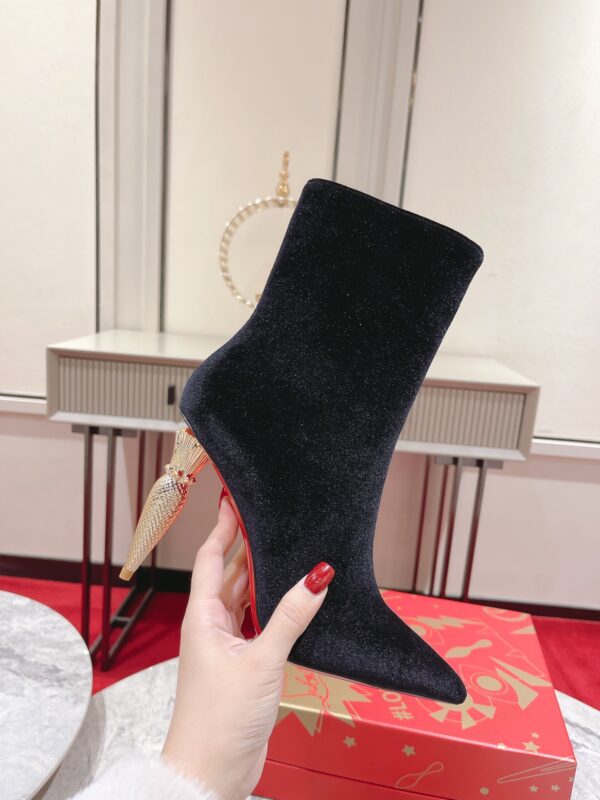 🆑❥∙ 💄 Queen’s Scepter Booties 🎀✪∙ꫛꫀw.✔︎ Glamorous gold heel that evokes 🆑 iconic red lipstick inspired by Egyptian Pillars I bought the original version in September, with accurate data and inverted film, the only matching version of the heel on the market, which is the reason for the slow shipment. (1:1 private model) My family has been imitated and never surpassed🚫 Material: Imported velvet, solid iron heel size: 34 yards-44 yards (34.40.41.42.43.44 customized non-refundable. ‼️43.44 size ➕10) Heel height: 8.5cm, 10cm Color: black, wine red