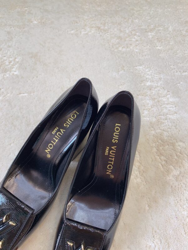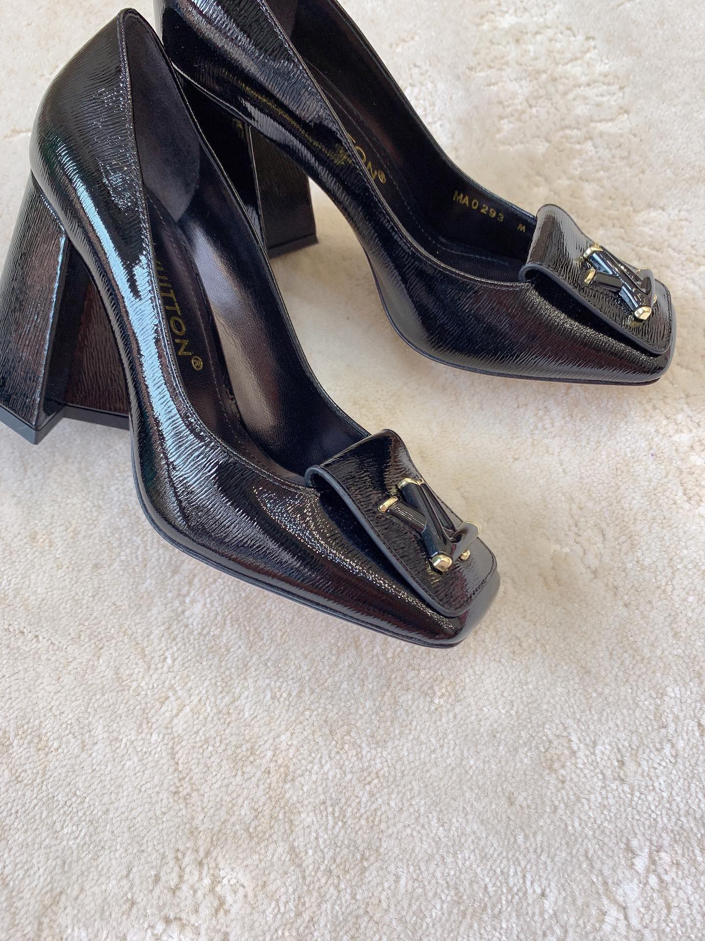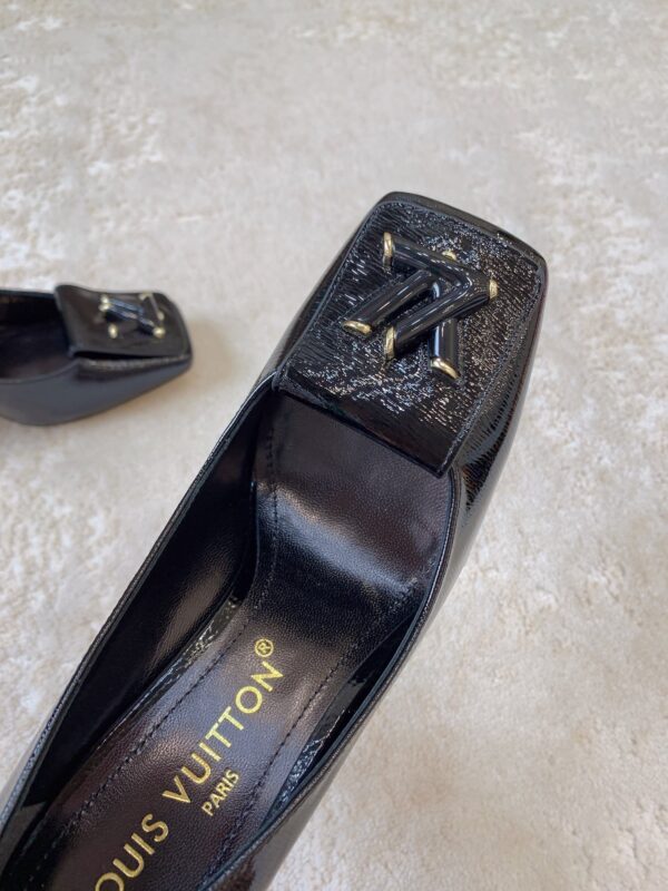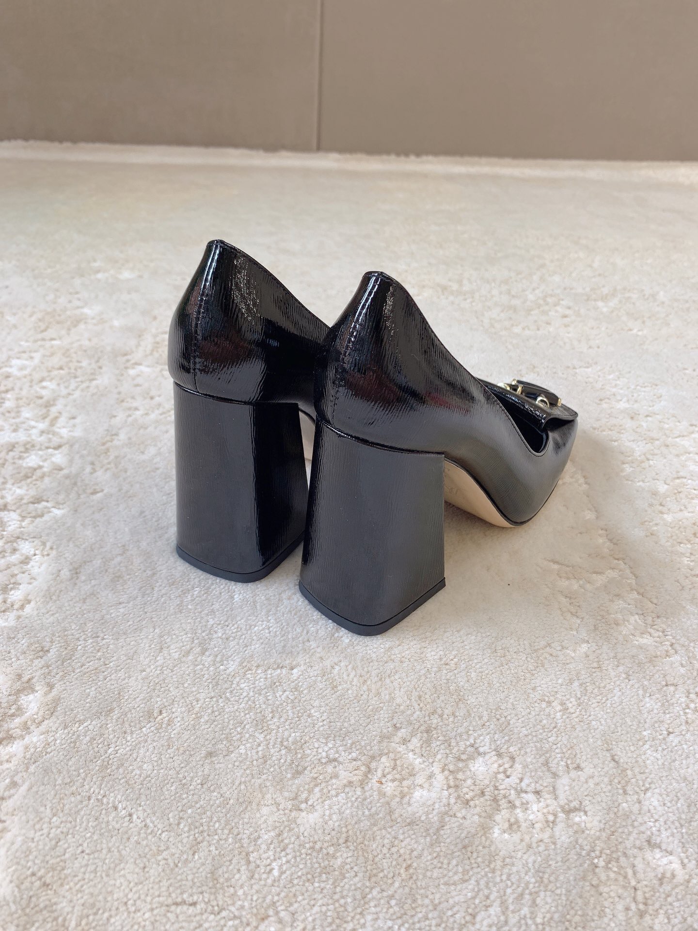 The LOGO logo on the upper is derived from the iconic lock of the handbag. Secure heel with V-shaped silhouette.
