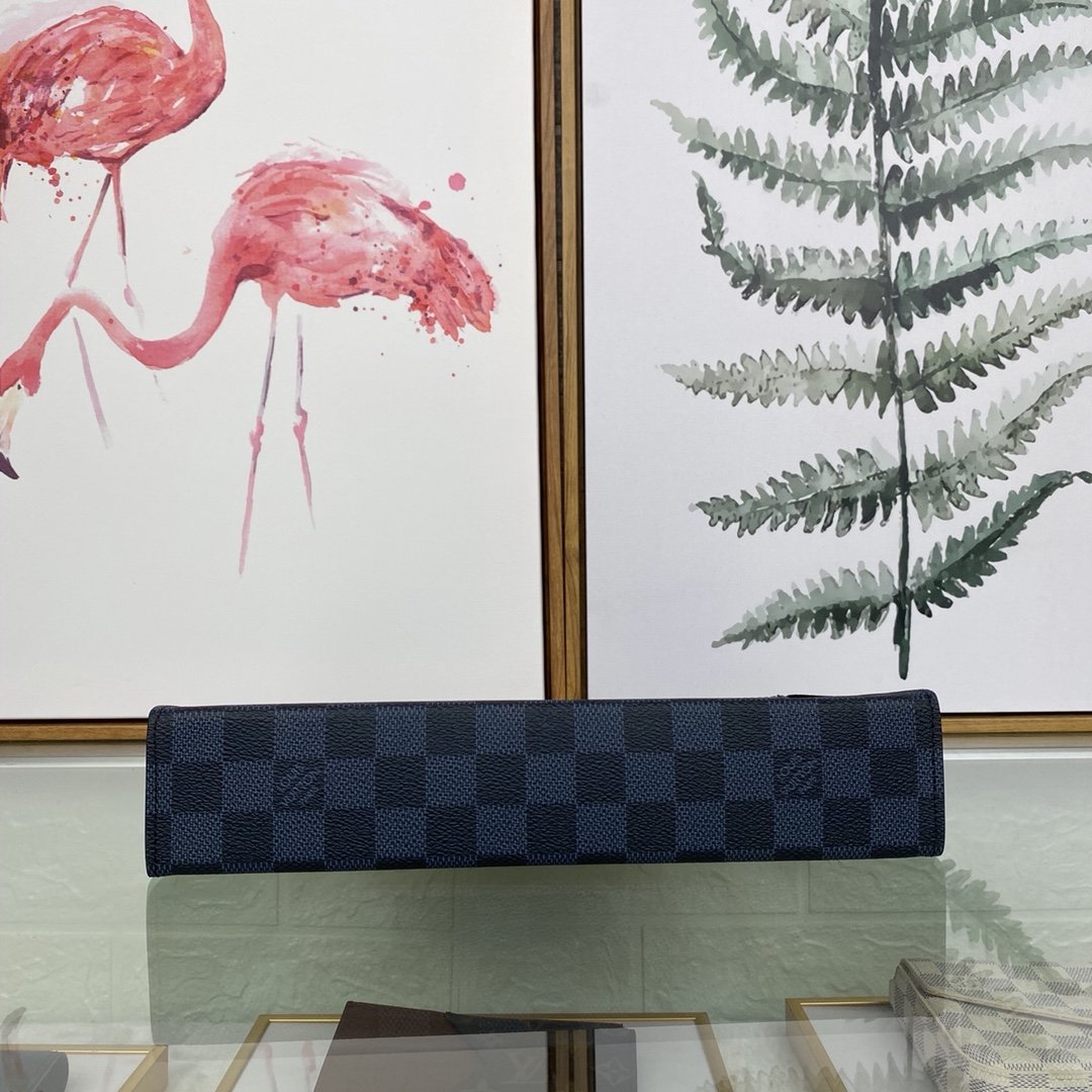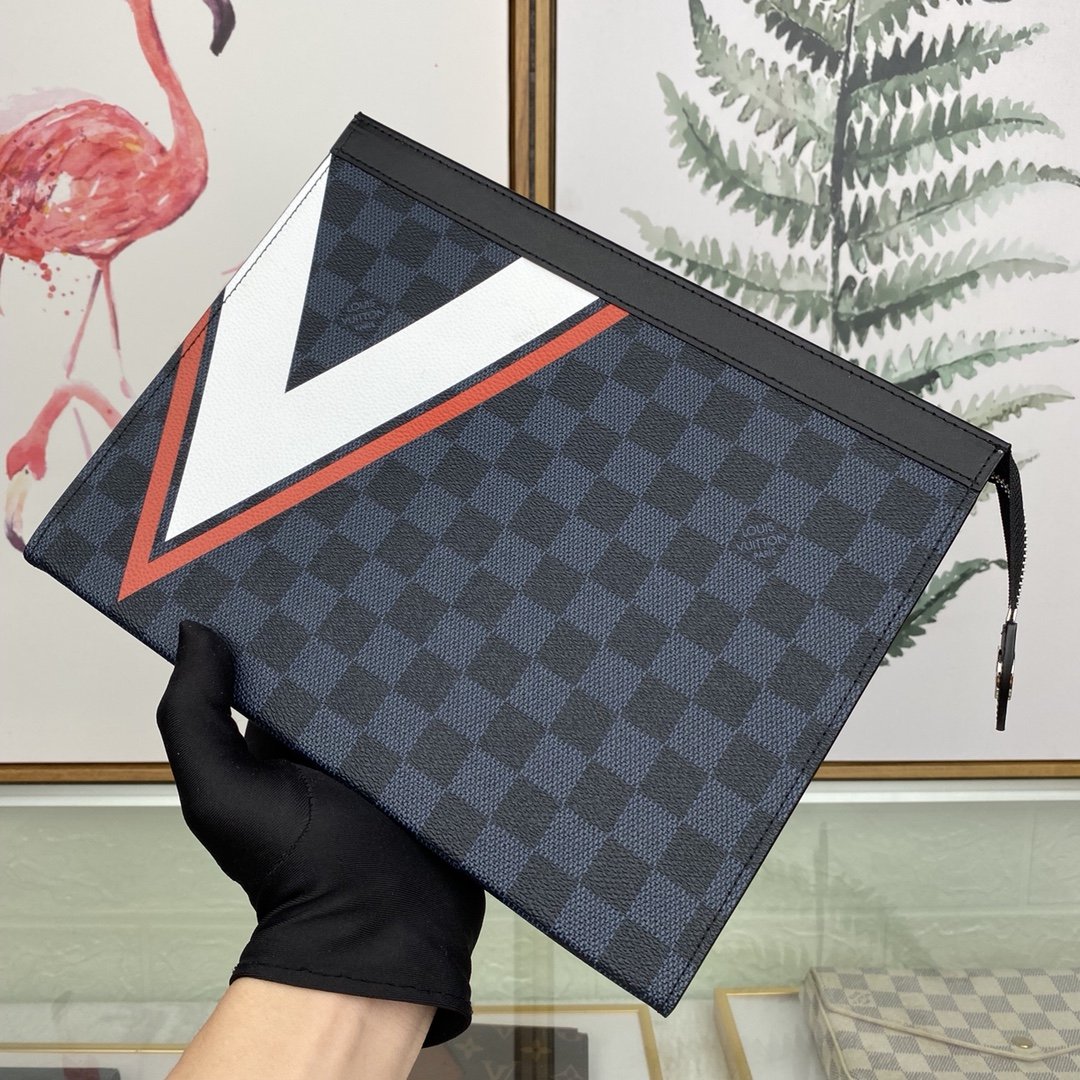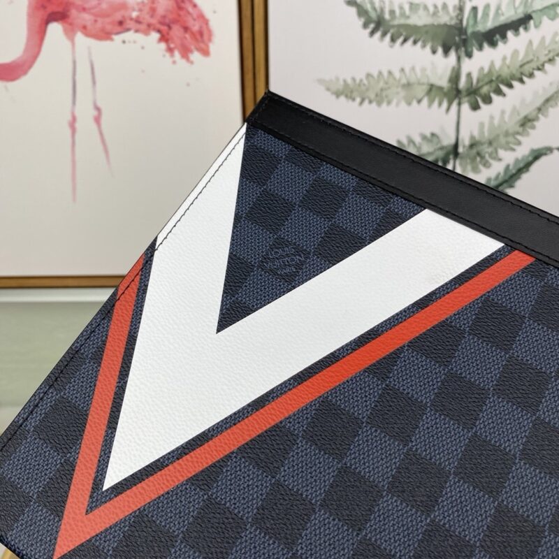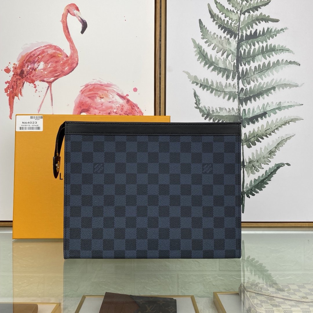 [louis vuitton] top original single N64023 This new Pochette Voyage handbag is characterized by expressive patterns and strong nautical style. The time-honored V Gaston logo draws a sporty, modern twist on a bold new Damier Latitude check pattern. It can be placed in a bag as a travel bag or held in your hand for a stylish display. The spacious interior and the gusset design make it easy to access personal essentials. Dimensions 27x21x3.