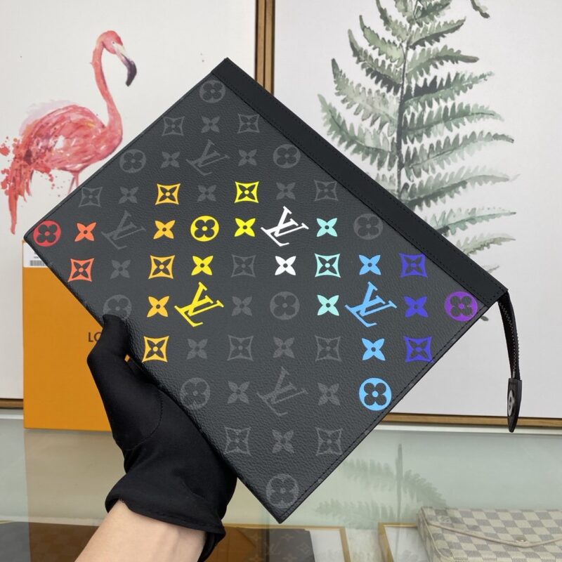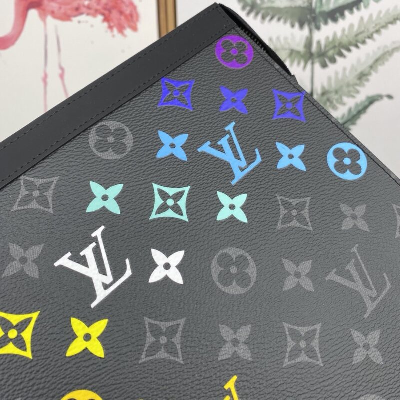 【Louis Vuitton】Top original single M61692 Hand-painted rainbow Size: 27.0 x 21.0 x 3.0 cm This style is cut from the new iconic black and gray Monogram Eclipse canvas. This tough new Pochette Voyage medium-sized handbag can easily store personal essentials thing.
