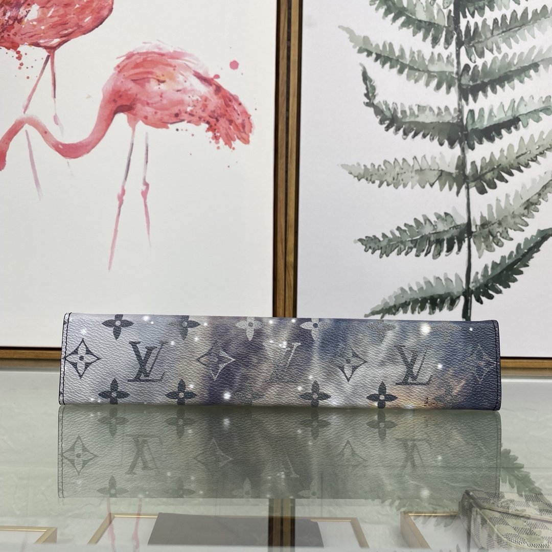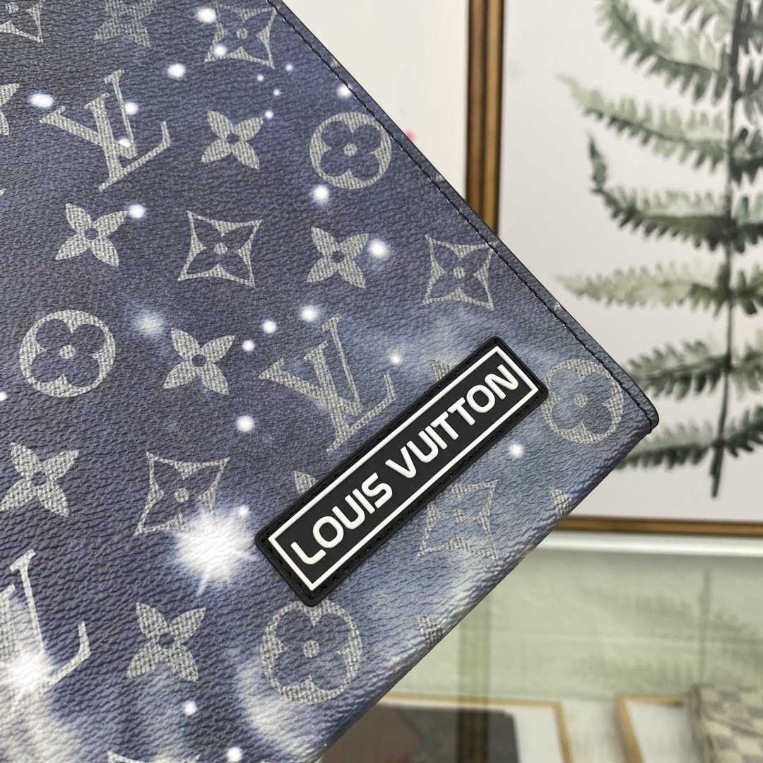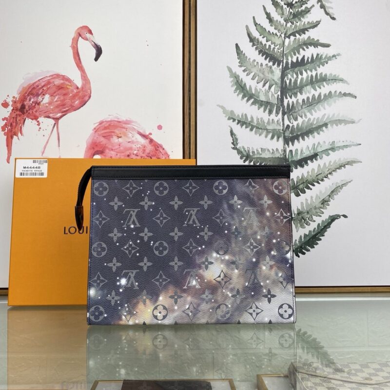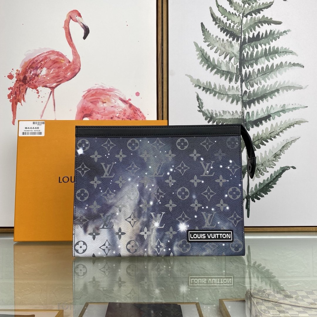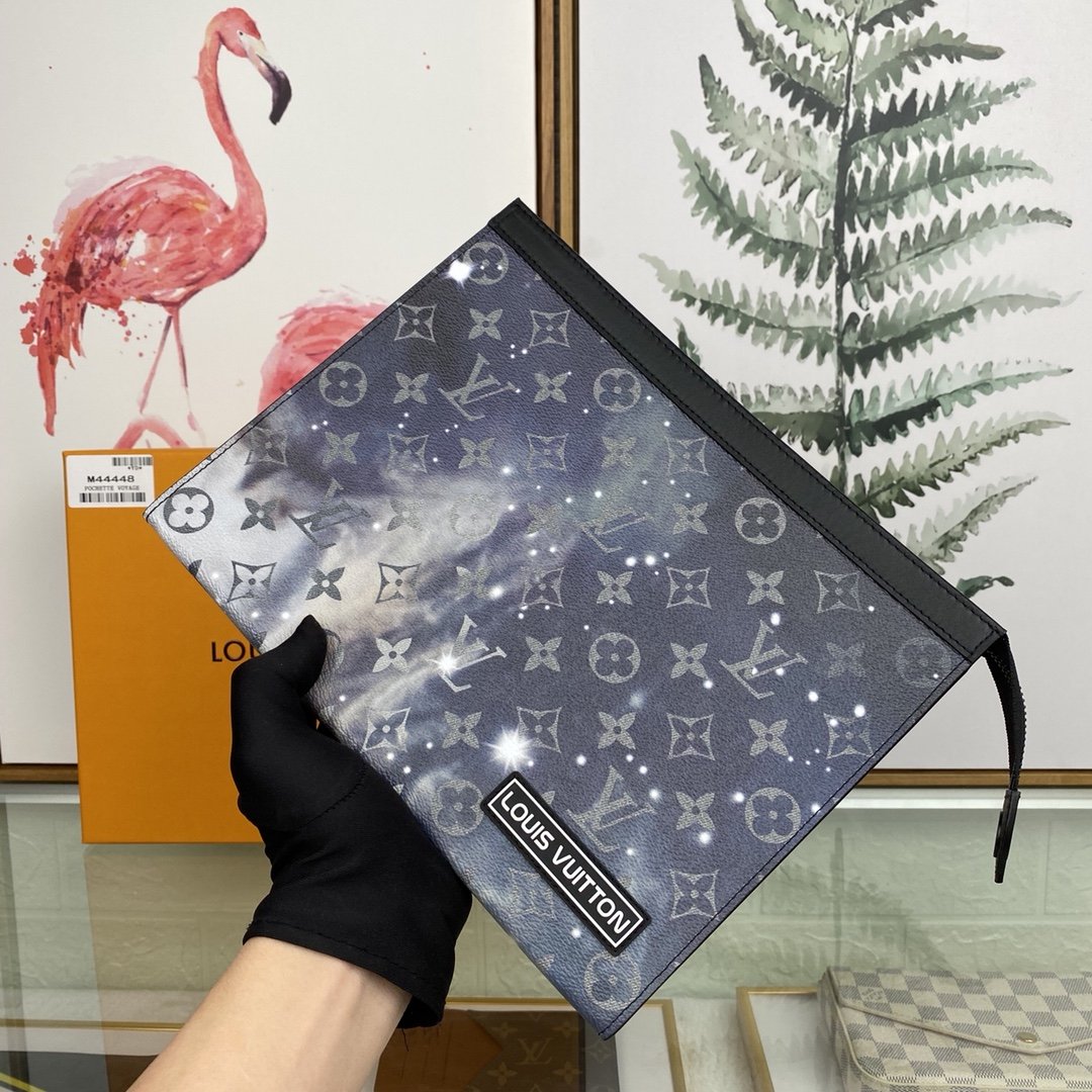 [louis vuitton] top original single M44448 POCHETTE VOYAGE medium handbag Louis Vuitton turned its attention to the bright and vast space, and redesigned the Pochette Voyage handbag in the 2019 spring and summer pre-show series. The classic Monogram pattern complements the dazzling galaxy and the dying sun. Compact enough to hold everyday essentials, the pouch can be held in hand or stored in a larger bag. 27.0 x 21.0 x 3.0 cm (L x H x W) Monogram Galaxy Coated Canvas Cowhide Trim Fabric and Cowhide Lining Silver Metal Trim 6 Credit Card Slots Internal Patch Pocket Zipper Closure