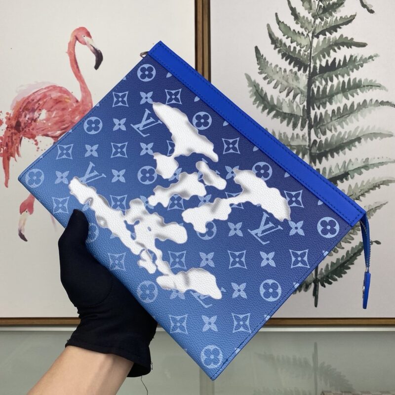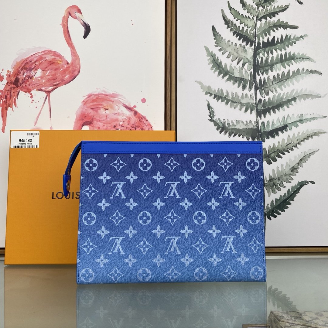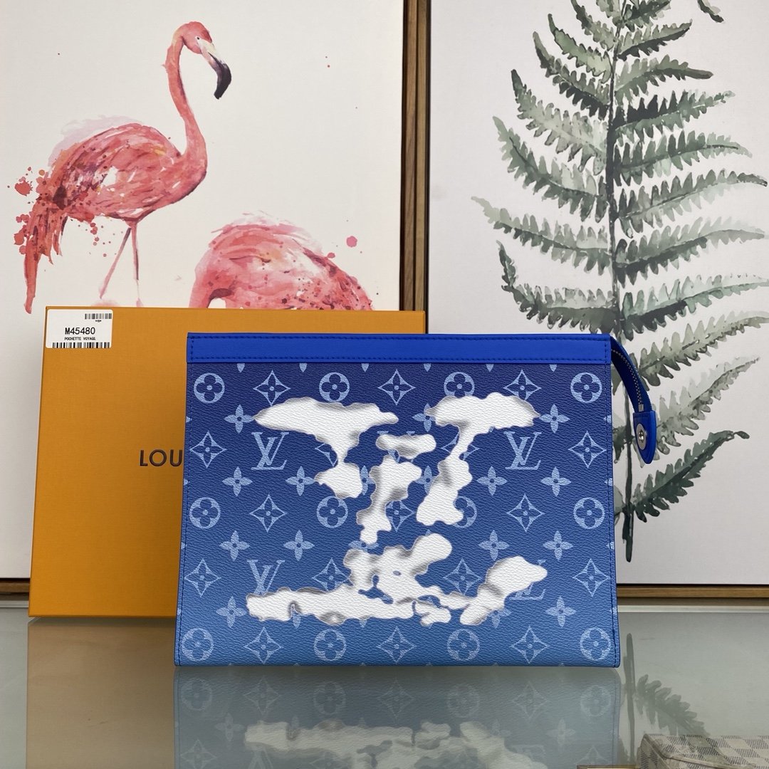 [louis vuitton] top original single M45480 size: 27.0 x 21.0 x 3.0 cm 2020 autumn and winter, Virgil Abloh renews the Pochette Voyage handbag design with a cloud theme, and then makes the ethereal LV logo appear on the Monogram canvas background. Pockets and card slots keep organized.