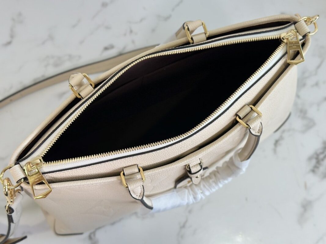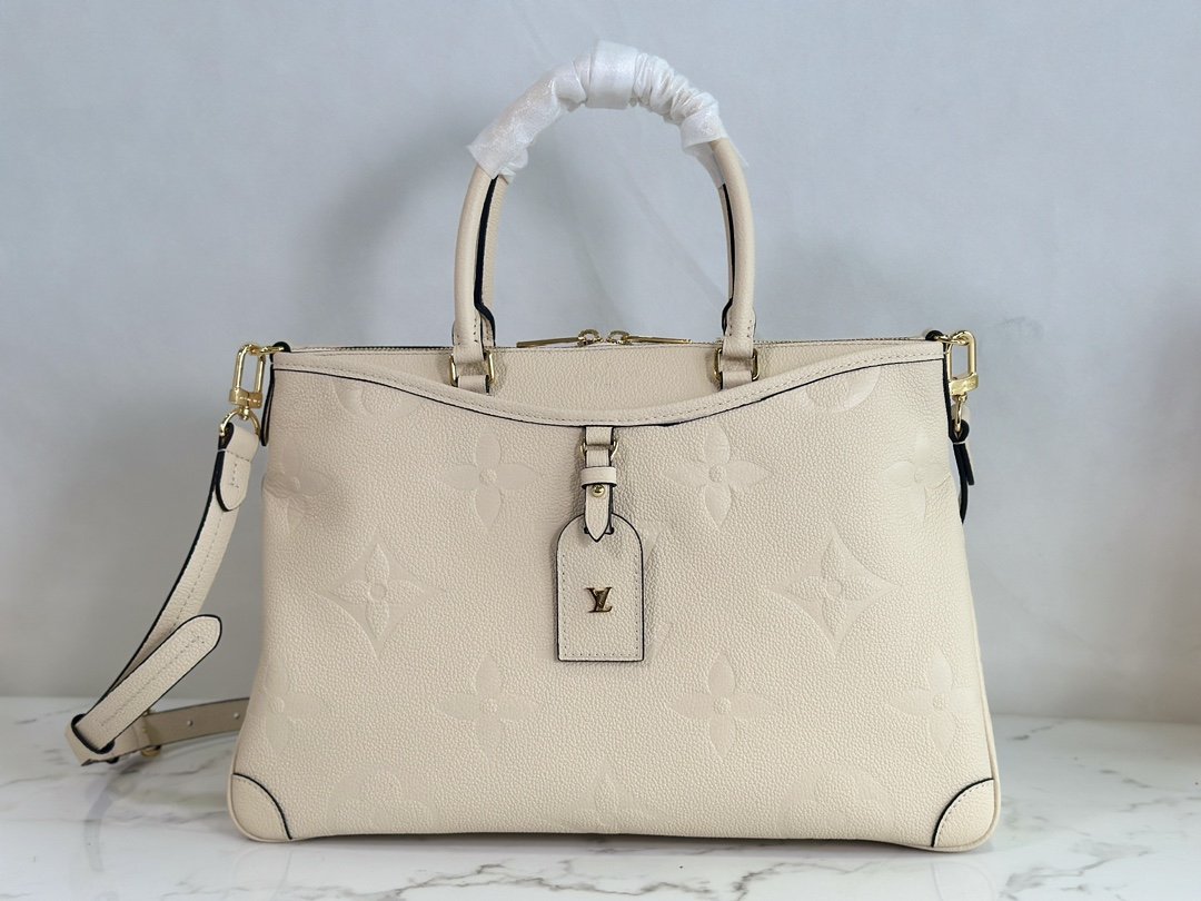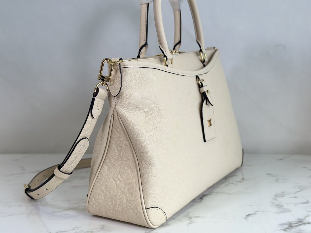 Handbag Collection Season’s new TRIANON MM The Trianon MM advocates elegant design and functionalism. Monogram Empreinte leather embossed with Giant Monogram graphics, medium size to accommodate everyday needs. Rolled leather handles allow for comfortable carrying, and the adjustable leather shoulder strap makes it easy to carry over the shoulder and across the body. Detailed features 36 x 22 x 9 cm.
