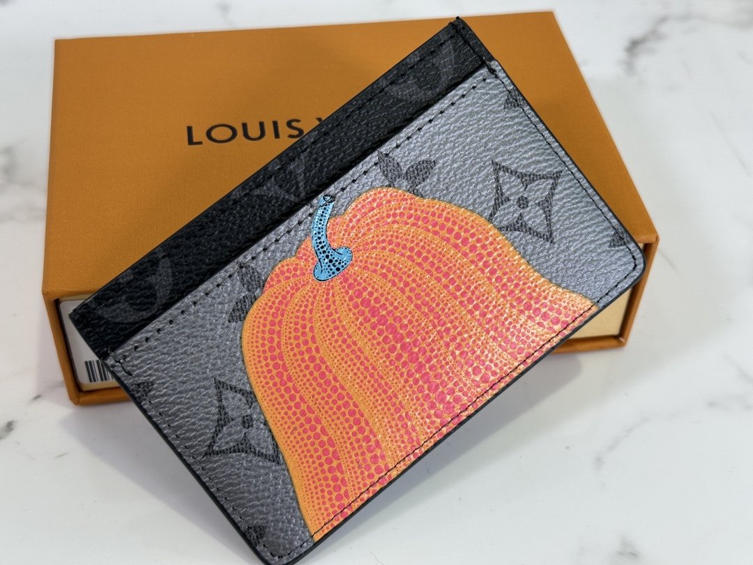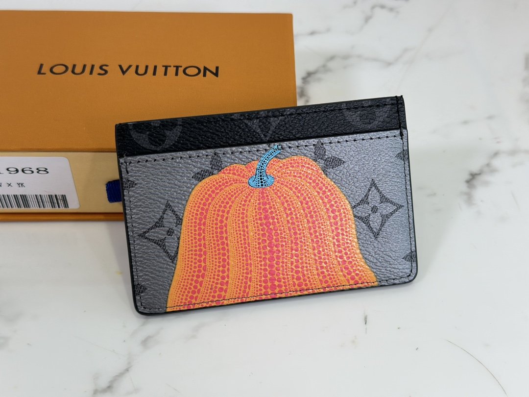 Card holder wallet series lv x yk porte cart simple The lv x yk porte cart simple card holder sublimates small and convenient accessories into miniature works of art. New Louis Vuitton x Yayoi Kusama collection items. The symbolic monogram eclipse reverse canvas material of the house. A design realized in colorful prints of pumpkins, the signature motif from the work of Japanese artist Yayoi Kusama. Perfect gift for art lovers and attractive collectible items for monogram lovers.