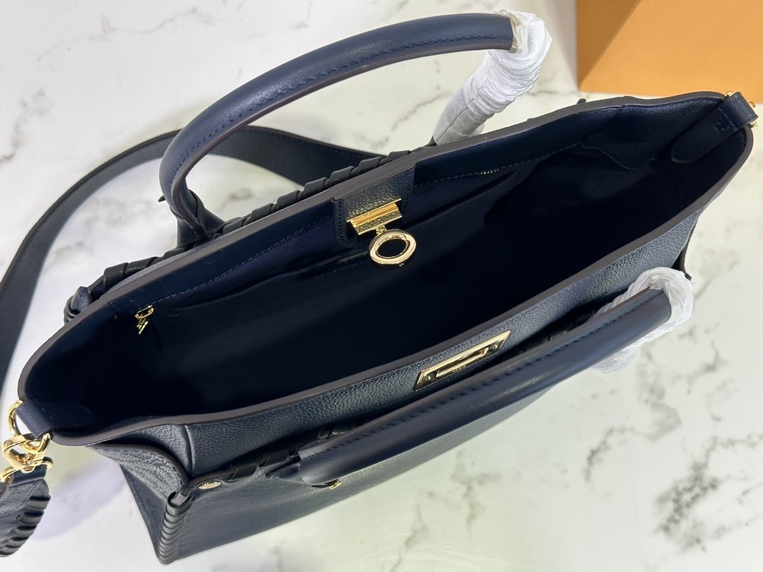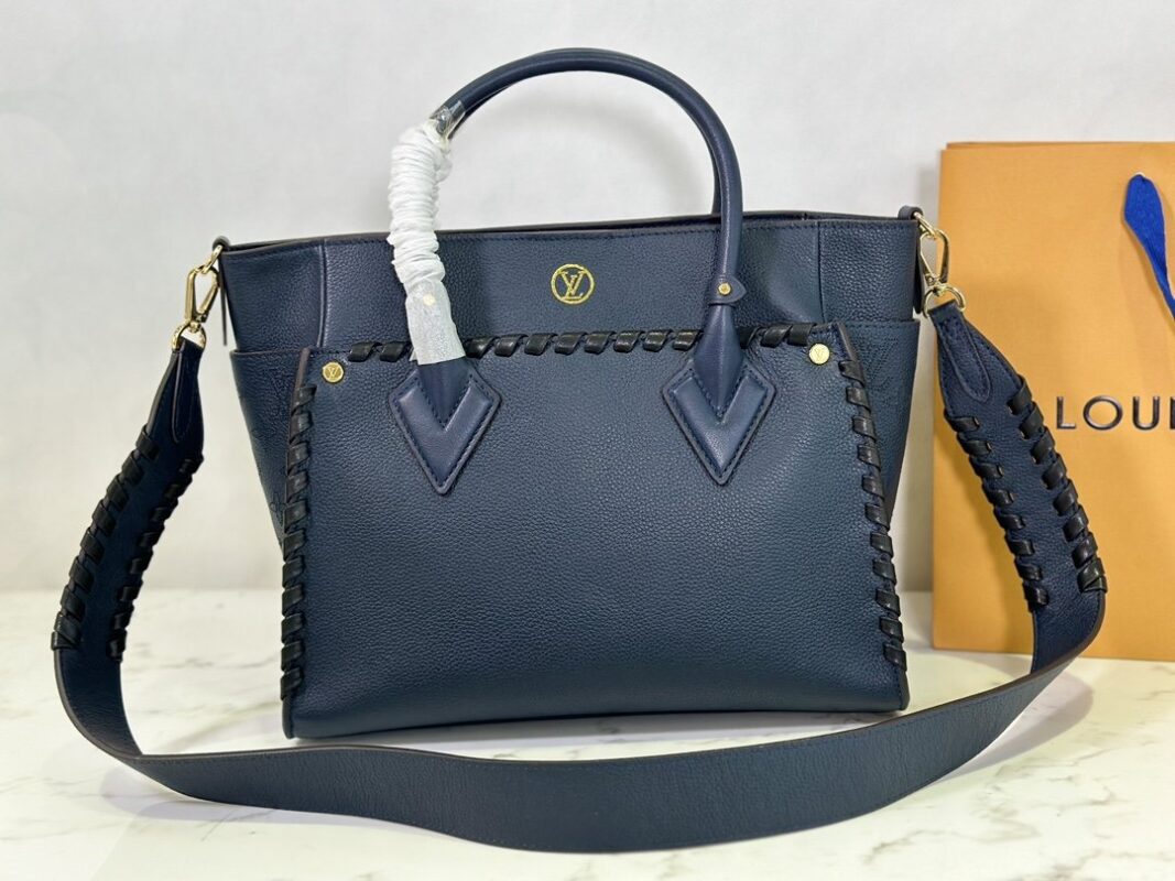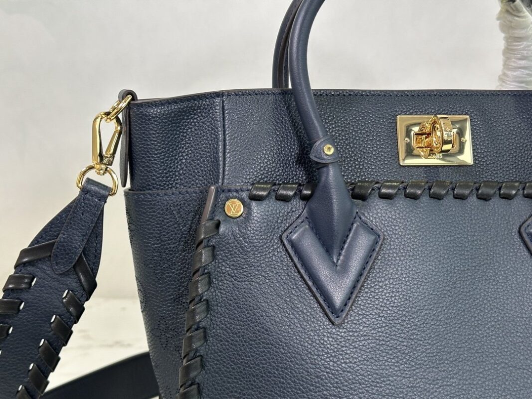 Woven series This On My Side medium handbag is made of calfskin, with Monogram perforated calfskin to create the structure on both sides. External pockets provide easy access to items, while the top handle and detachable shoulder strap allow shoulder and cross-body options. Detailed features 30.5 x 24.5 x 14 cm.