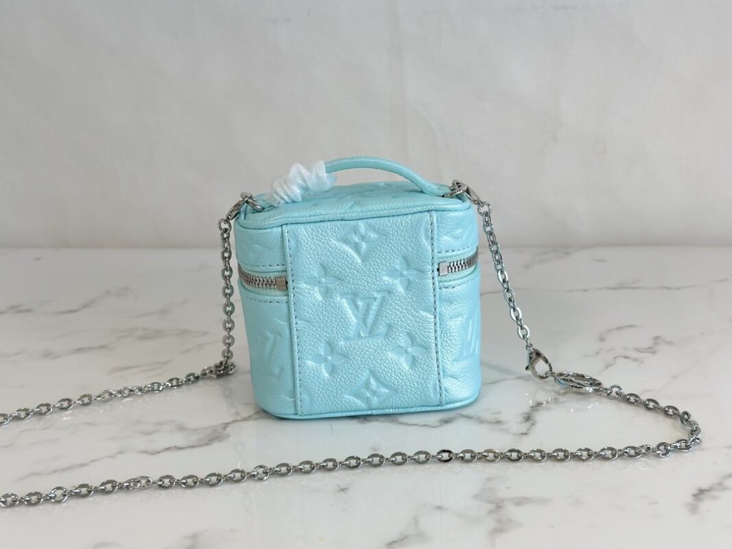 The Micro Vanity handbag follows Louis Vuitton’s travel heritage and taps the stylish potential of the classic cosmetic case. Monogram Empreinte grained leather with a lustrous pearlescent finish, LV Circle logo embellished with detachable and adjustable chain. The exquisite shape can accommodate small accompanying items, and the detachable mirror is convenient for makeup touch-ups at any time.
