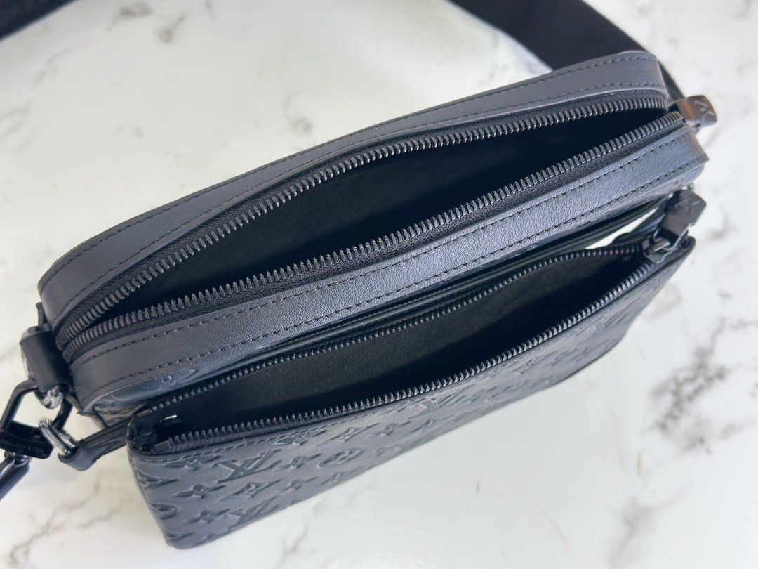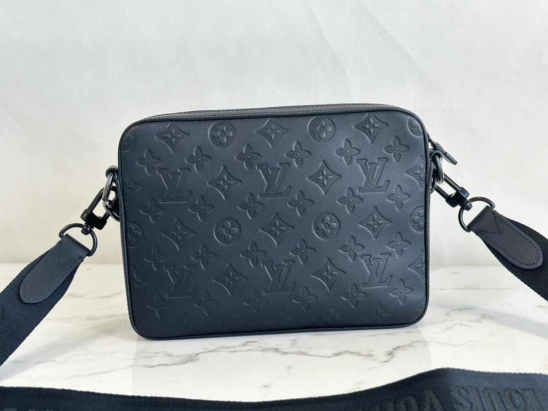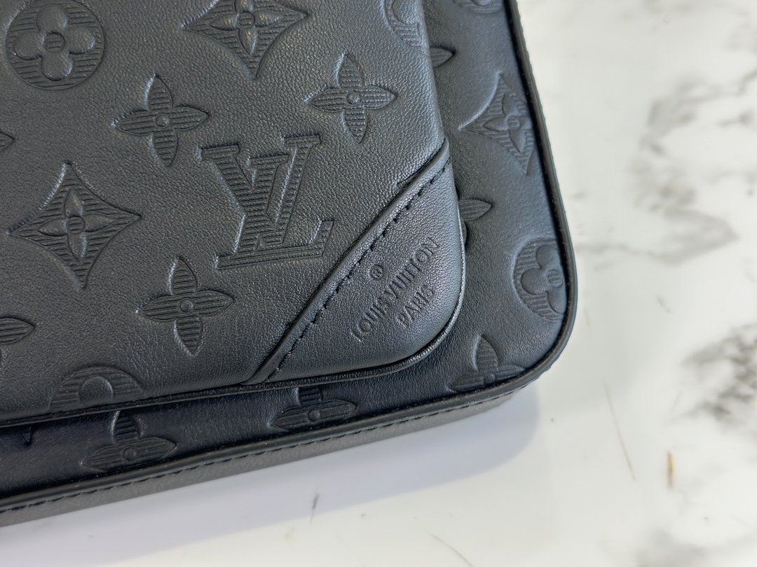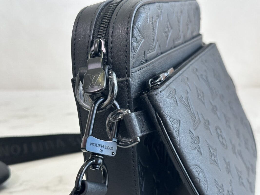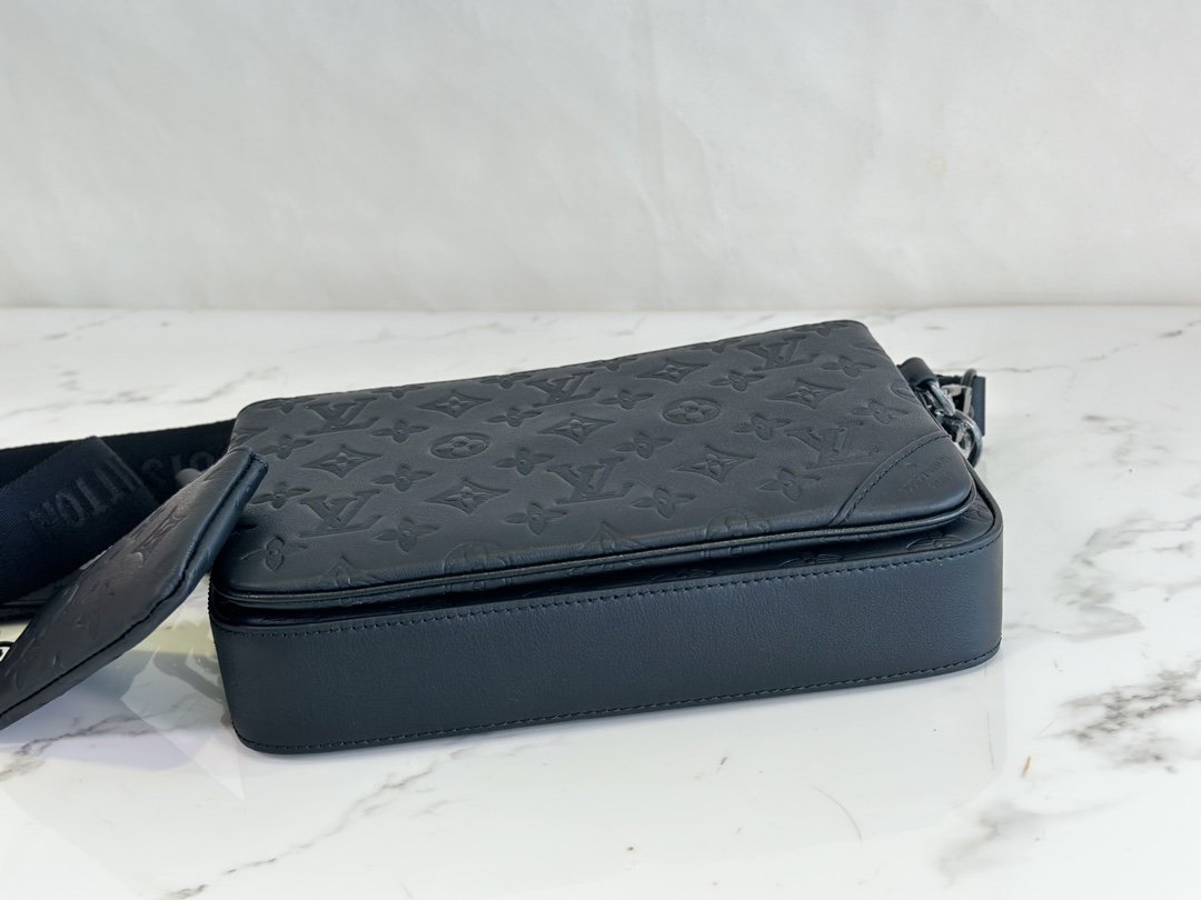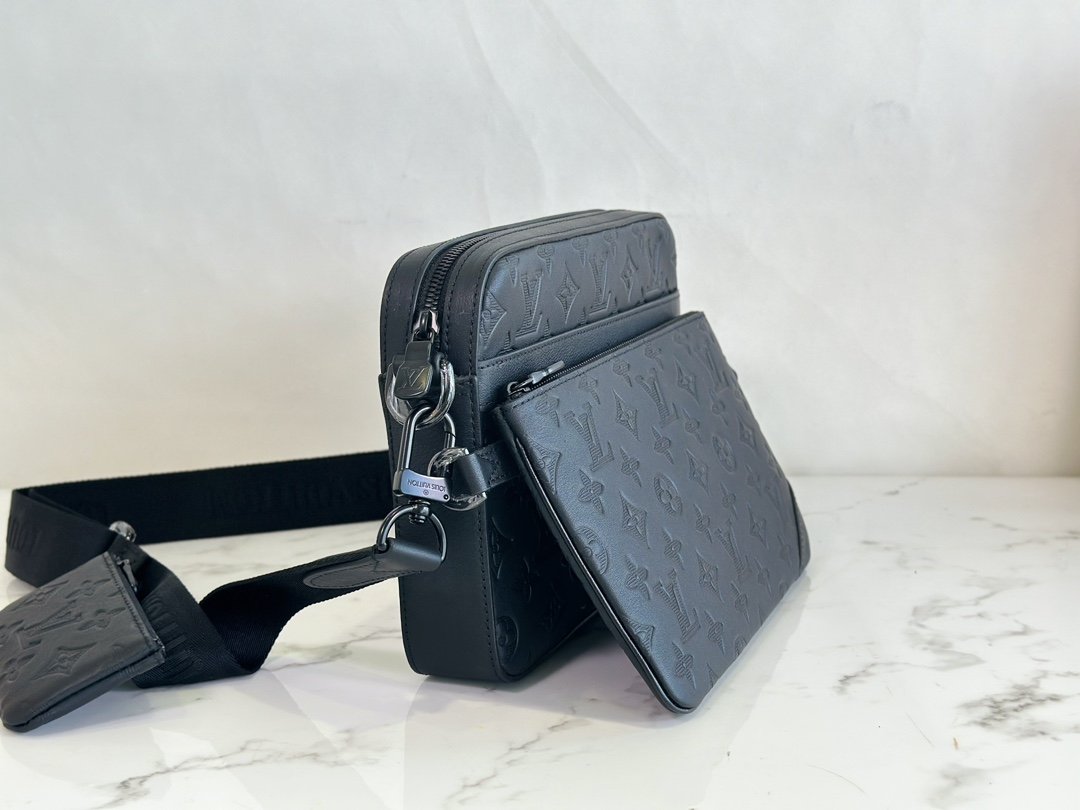 Men’s bag three-piece series This Trio messenger bag is made of Monogram embossed calfskin. The zippered front pocket and the small coin purse at the shoulder strap are detachable, and are designed with the main compartment to enrich functions. The detachable and adjustable jacquard shoulder strap is branded for comfort on the shoulder and across the body.