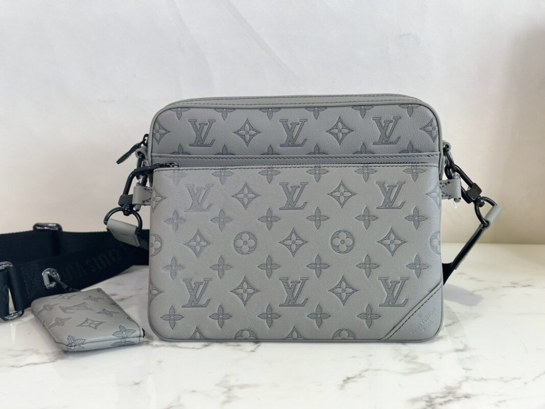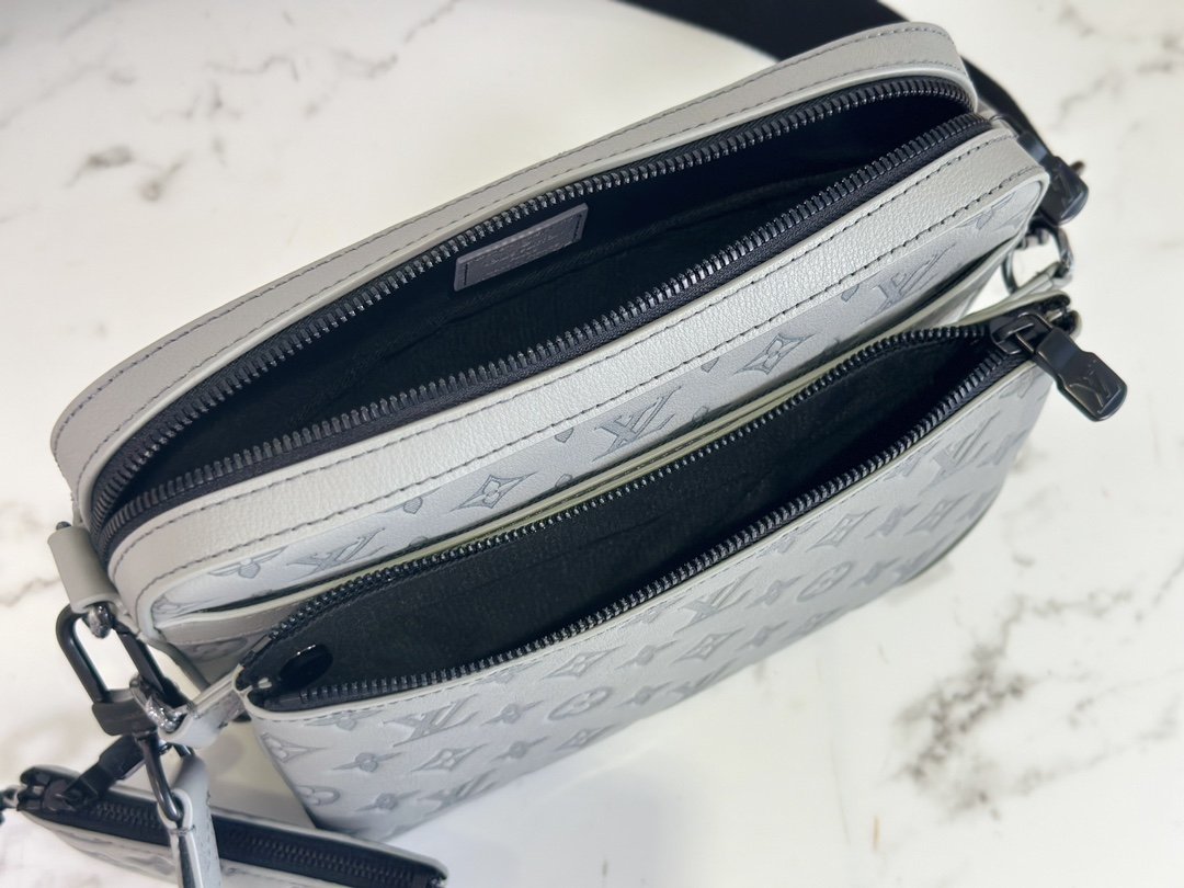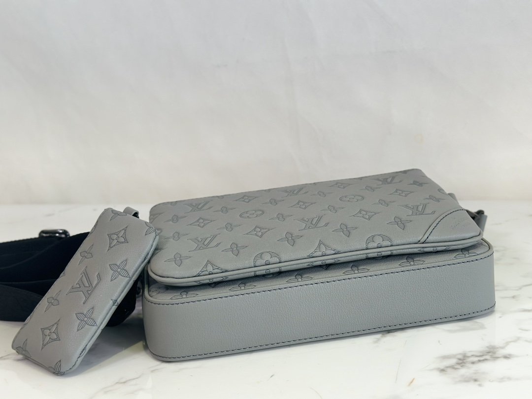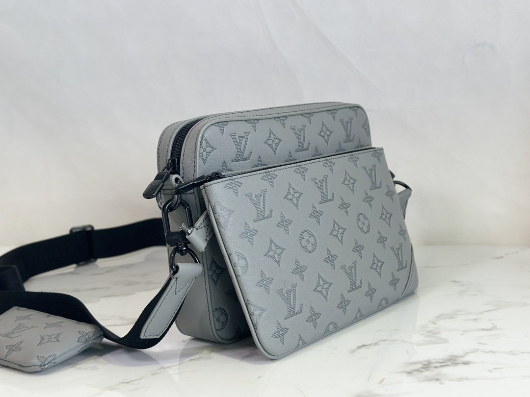 Men’s bag three-piece series This Trio messenger bag is made of Monogram embossed calfskin. The zipper front pocket and the small coin purse at the shoulder strap can be detached, and it is designed with the main compartment to enrich functions. The detachable and adjustable jacquard shoulder strap is branded for comfort on the shoulder and across the body.
