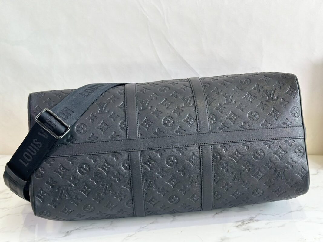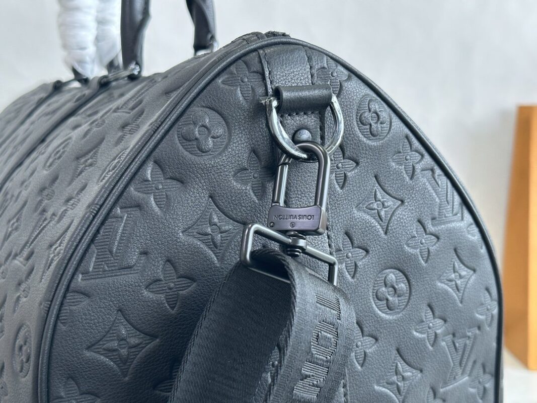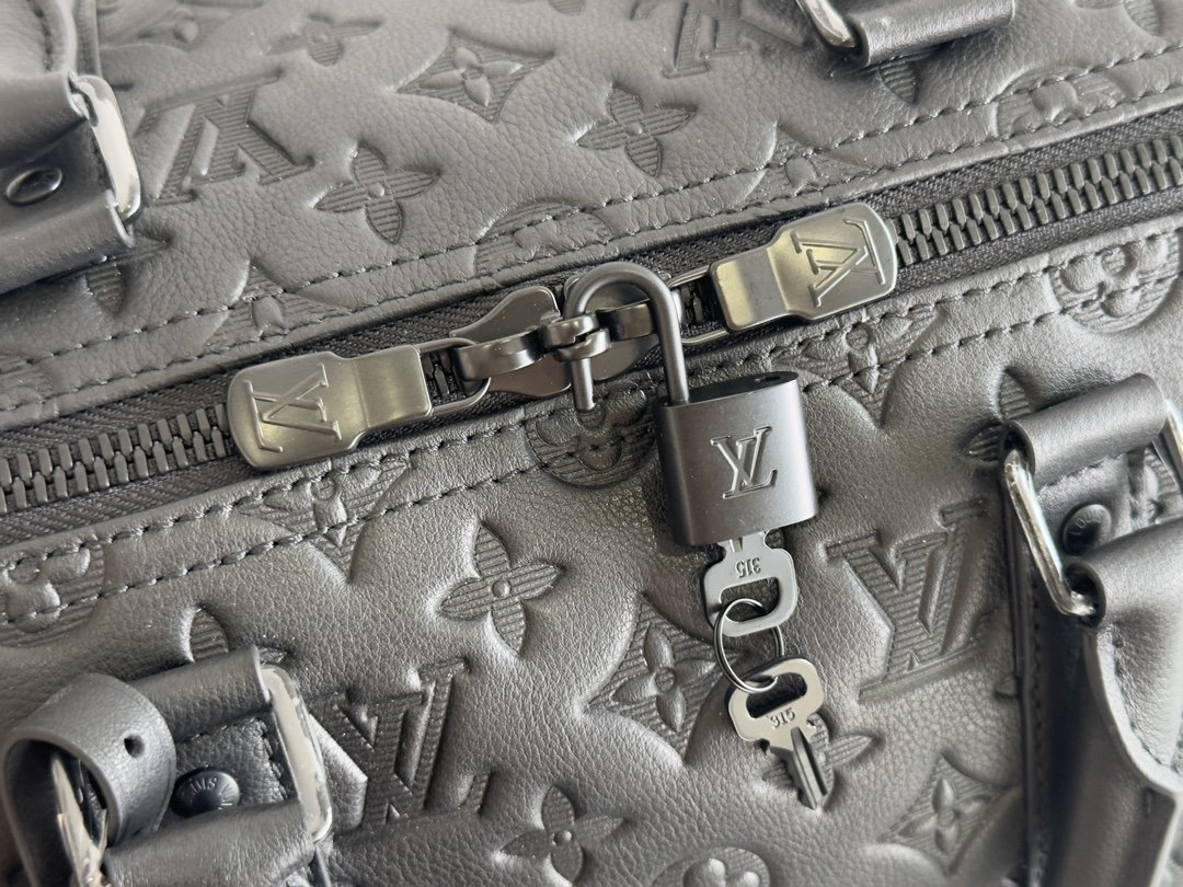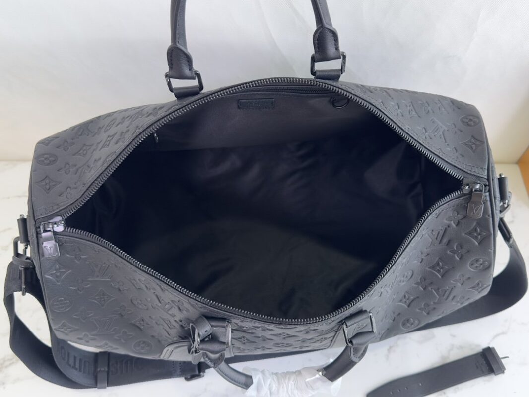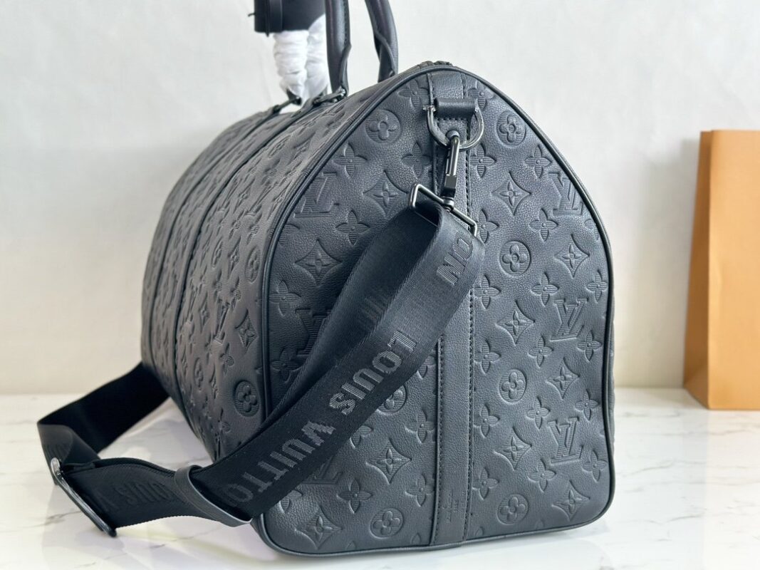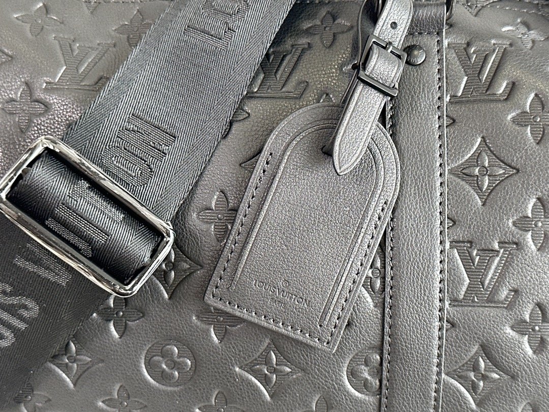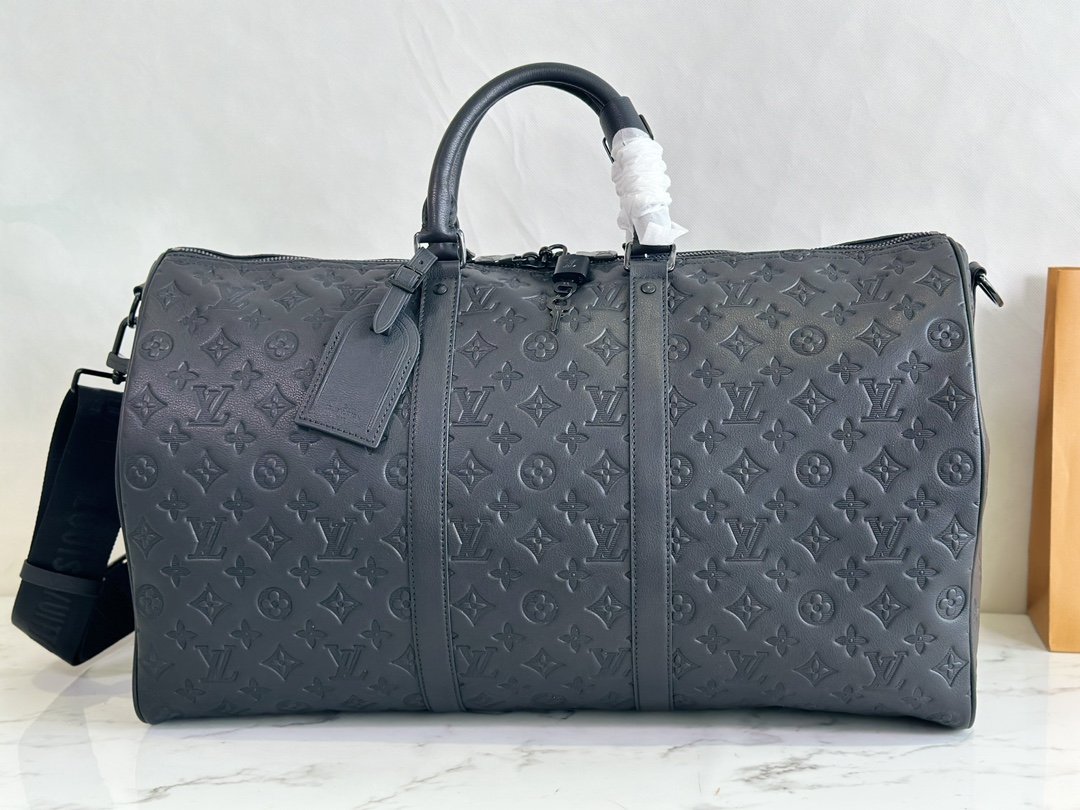 The Keepall BANDOULIÈRE 50 travel bag is Monogram Shadow leather with full-width Monogram embossing, full leather embossed travel bag oo with matte metal parts, achieving a minimalist design, cabin luggage size suitable for short trips. Born in the 1930s, the Keepall line of soft travel bags is as classic as it is today.