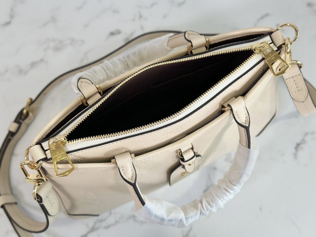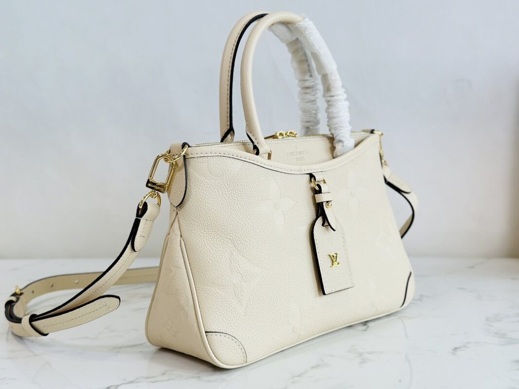 M46488 Black full leather embossed handbag series The new TRIANON small handbag this season This small Trianon handbag is made of Monogram Empreinte embossed leather, with a V-shaped outline echoing the brand’s iconic Pallas handbag design, achieving the exquisiteness beyond the traditional tote bag choice. Top handle and detachable shoulder strap for comfortable carrying. Detailed features 28 x 18 x 8 cm