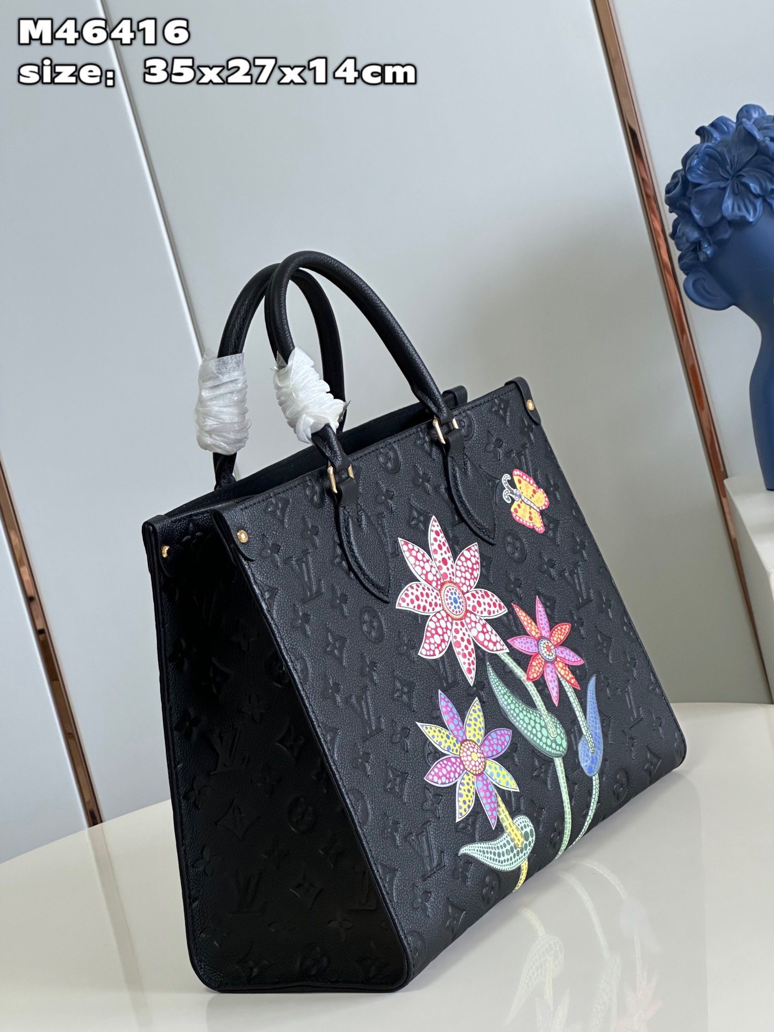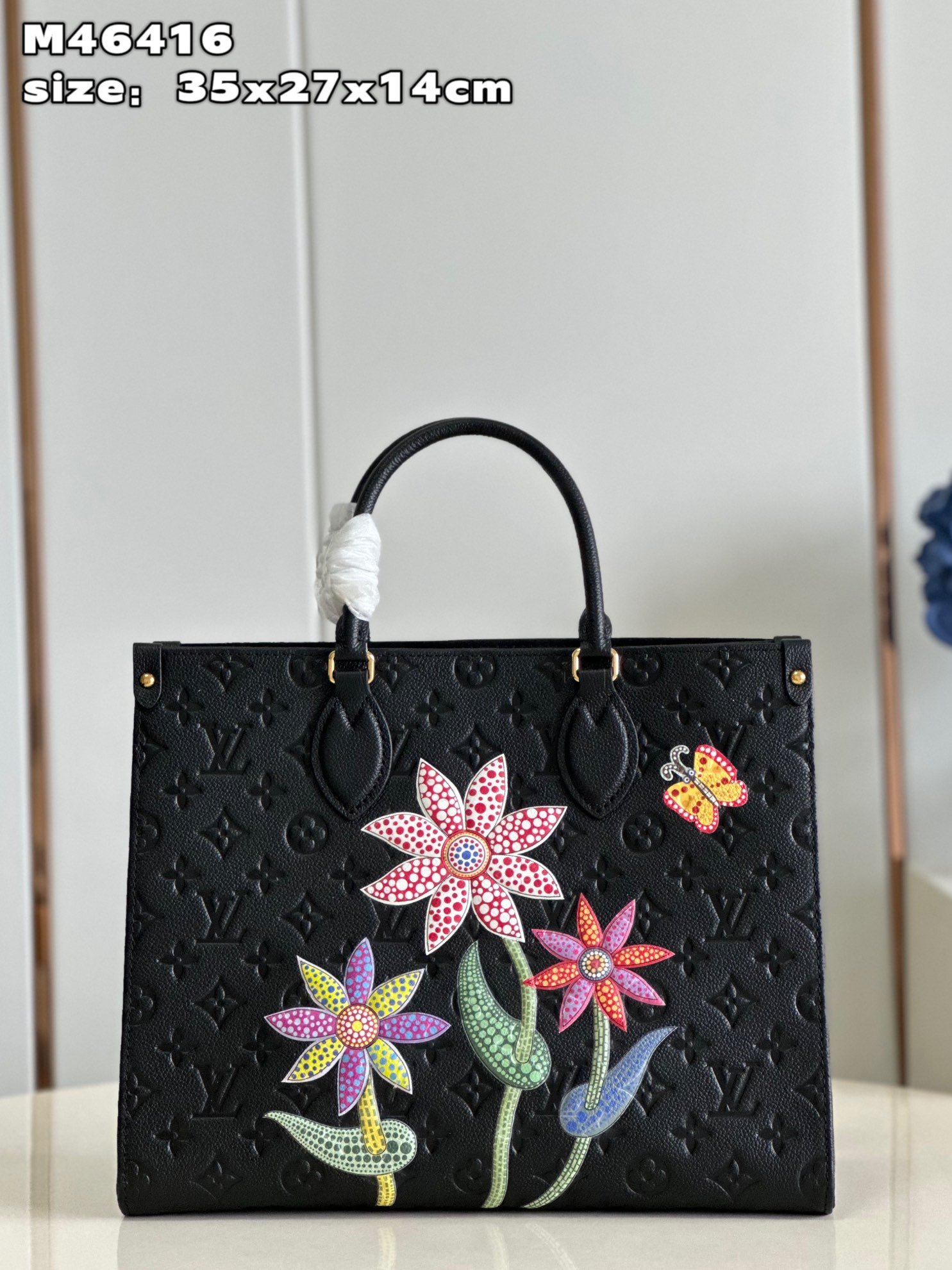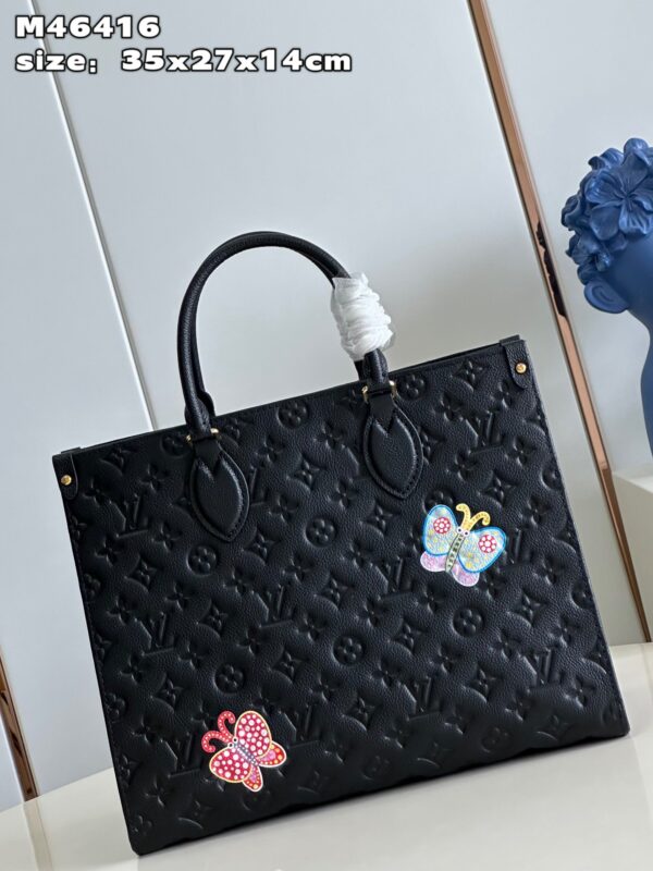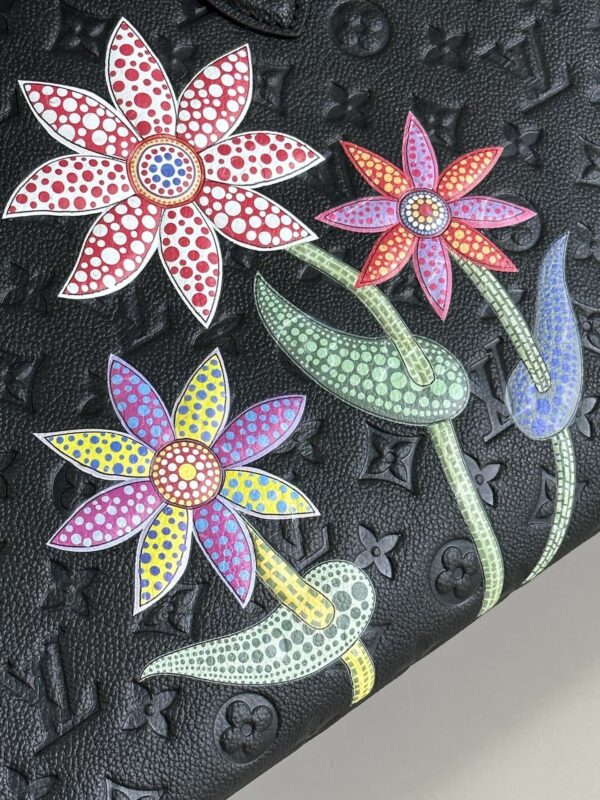 This LV x YK OnTheGo MM is made of luxurious black Monogram Empreinte cowhide, embedded with exquisite floral patterns, making it the main bag of the Louis Vuitton x Yayoi Kusama series. Acclaimed artist Yayoi Kusama grew up in rural Japan, where her parents ran a nursery, and flowers have been a central theme throughout her artistic career. This utilitarian bag is roomy and a masterpiece of art and craftsmanship. size: 35x27x14cm