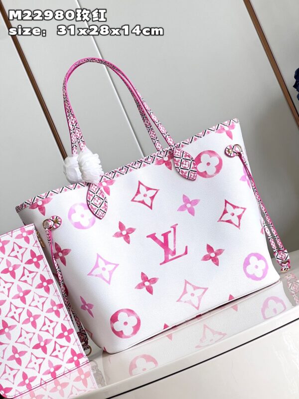 This Neverfull medium-sized handbag depicts the Giant Monogram pattern on the elegant canvas, which makes the LV and Monogram flowers present a watercolor-like artistic conception, and then lays out the delicate Monogram flowers on the edge trim, handle and handle ring of the bag cluster. size: 31x28x14cm