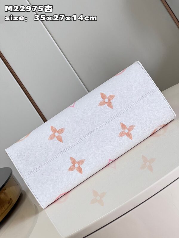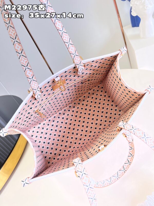 This OnTheGo medium handbag depicts a large Monogram pattern on coated canvas, and then lays out intricate Monogram flowers on the trim and lining, showing the inspiration of traditional Portuguese tiles. The ample space combined with the long and short handle design makes it a good choice for daily travel. size: 35x27x14cm