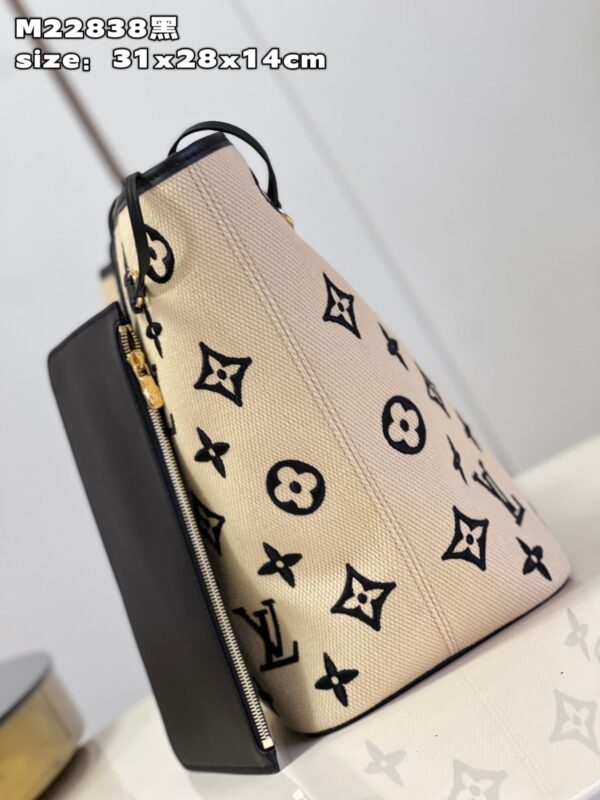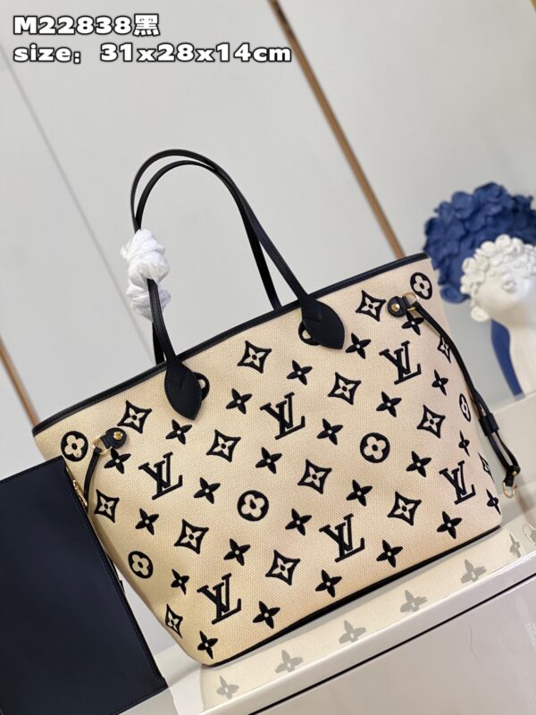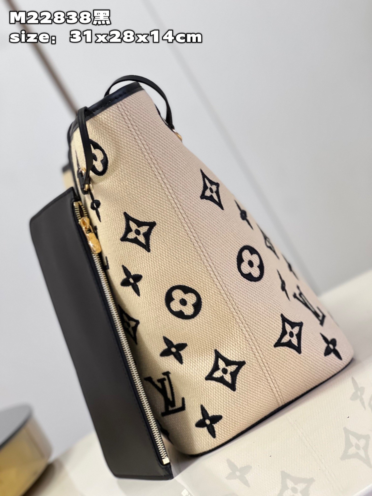 This Neverfull medium-sized handbag is from the new By the Pool series, releasing the unrestrained seaside holiday atmosphere. This raffia-flexible cotton is patterned with the Monogram pattern for summer. The flexible design allows ample capacity to travel with ease. size: 31x28x14cm