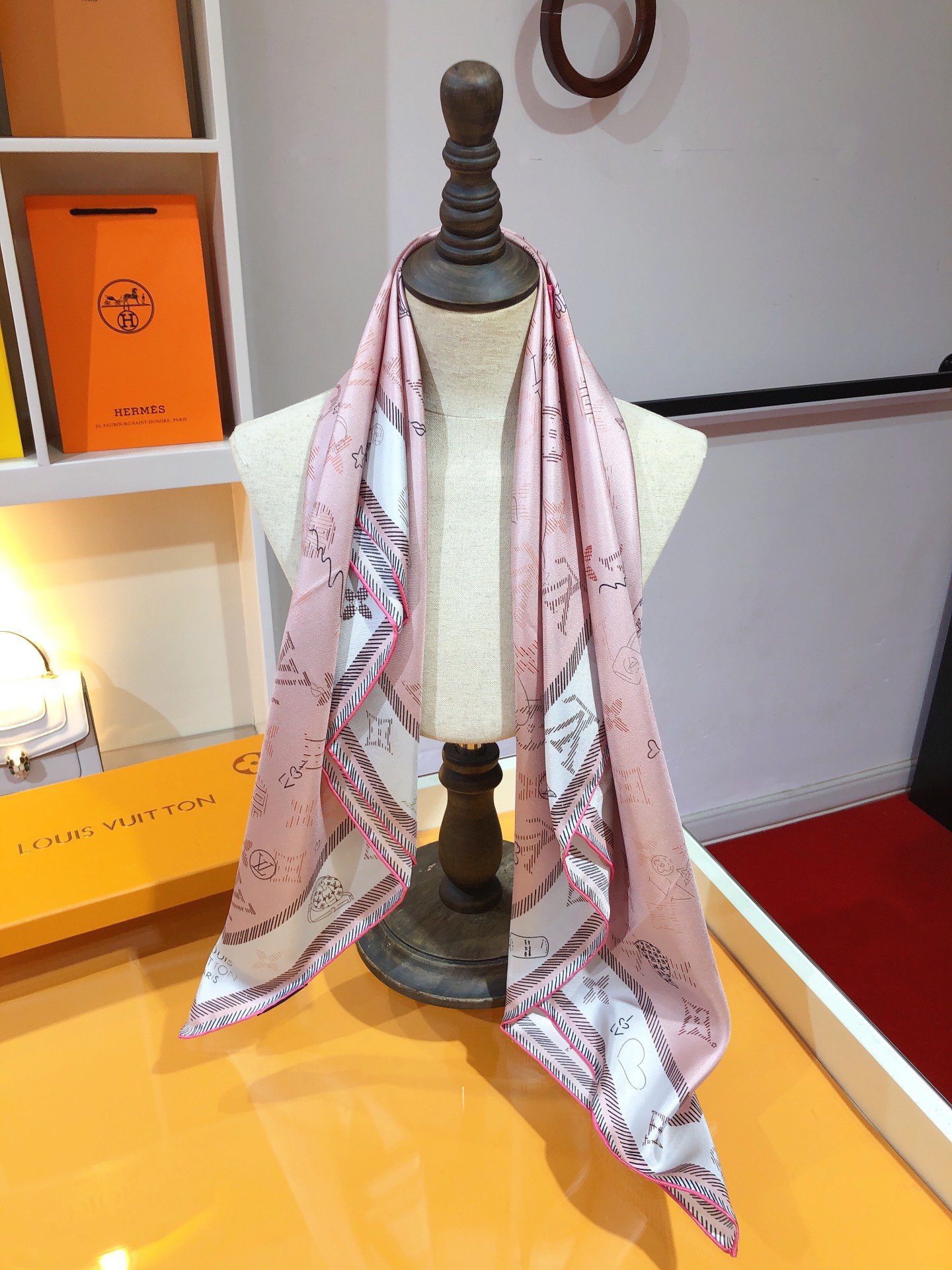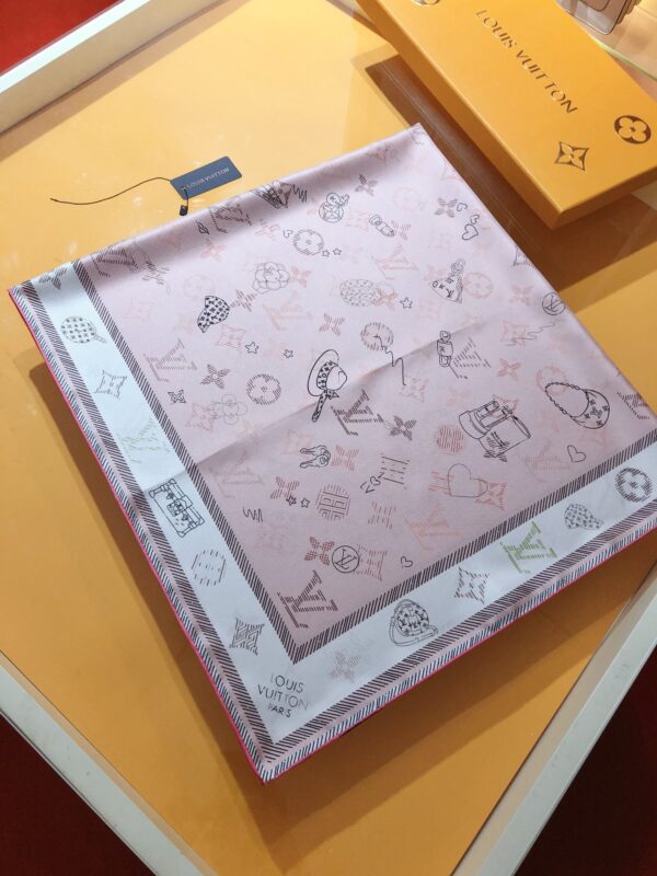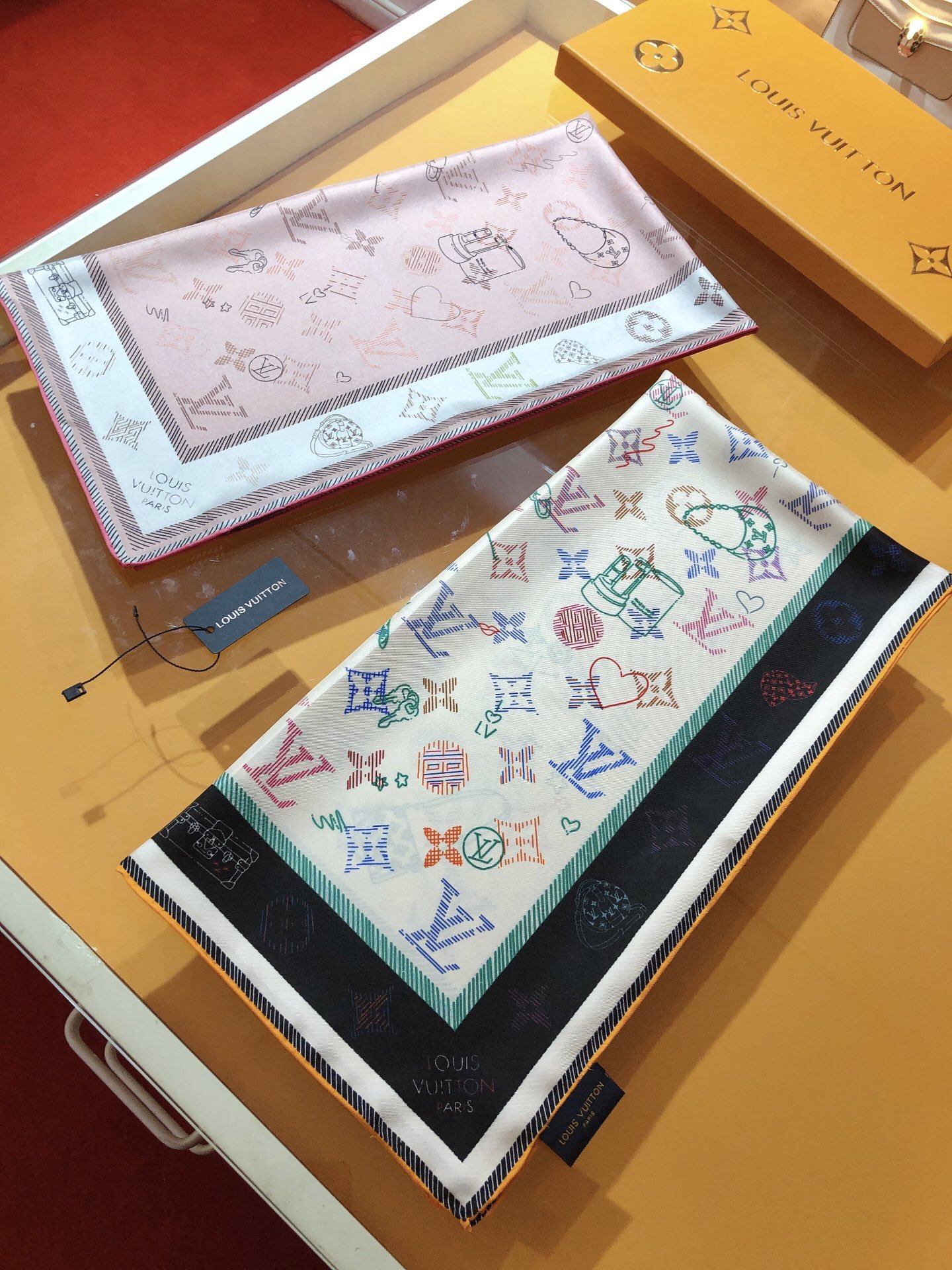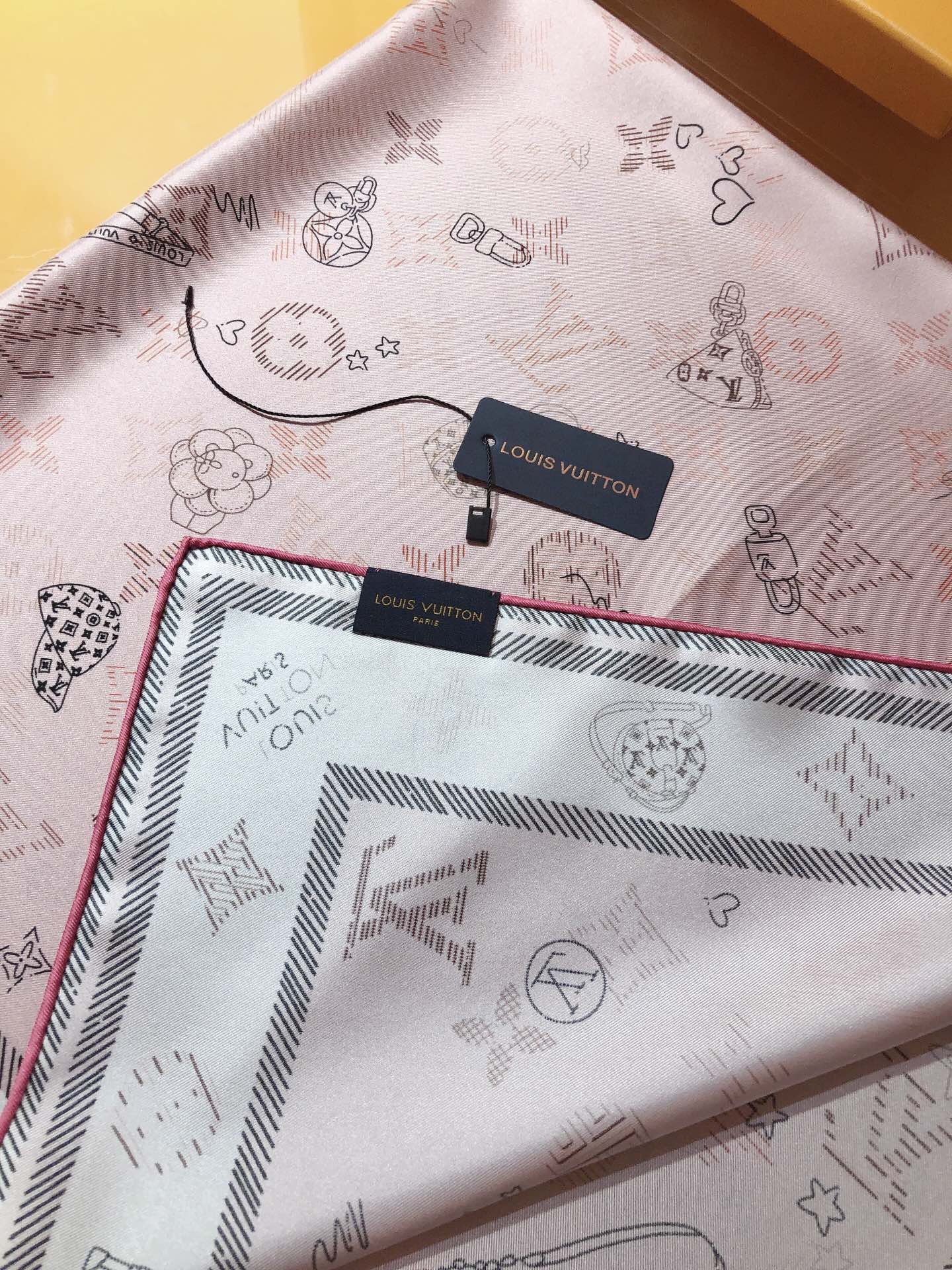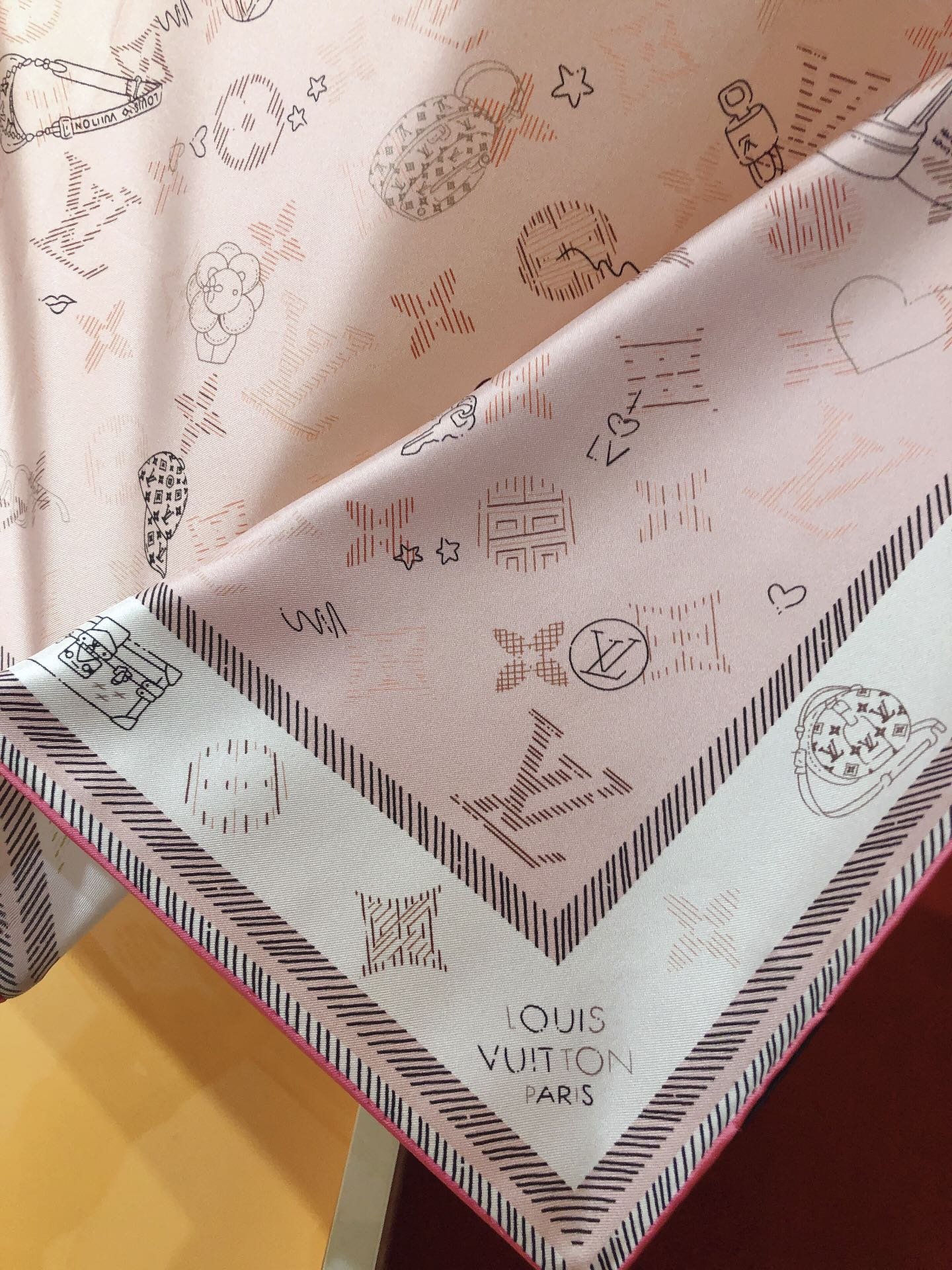 SLV2335Original single Lv [WISHLIST] square scarf 90cm version. The square scarf has become the exhibition space for Louis Vuitton’s classic creations. The pattern of brand handbags, hard cases and accessories is depicted with silk screen printing, which is set against the Monogram background. Mulberry silk with hand rolled edges. Twill silk materialPure hand-rolled edge, full of light and luxurious feelingIt can line the skin tone and be versatile High-end heavy twill silkNew counter 【Ingredient size: 90X90cm 100% twill silk】
