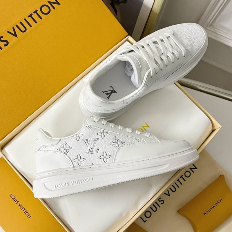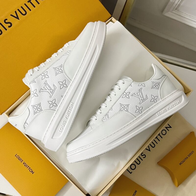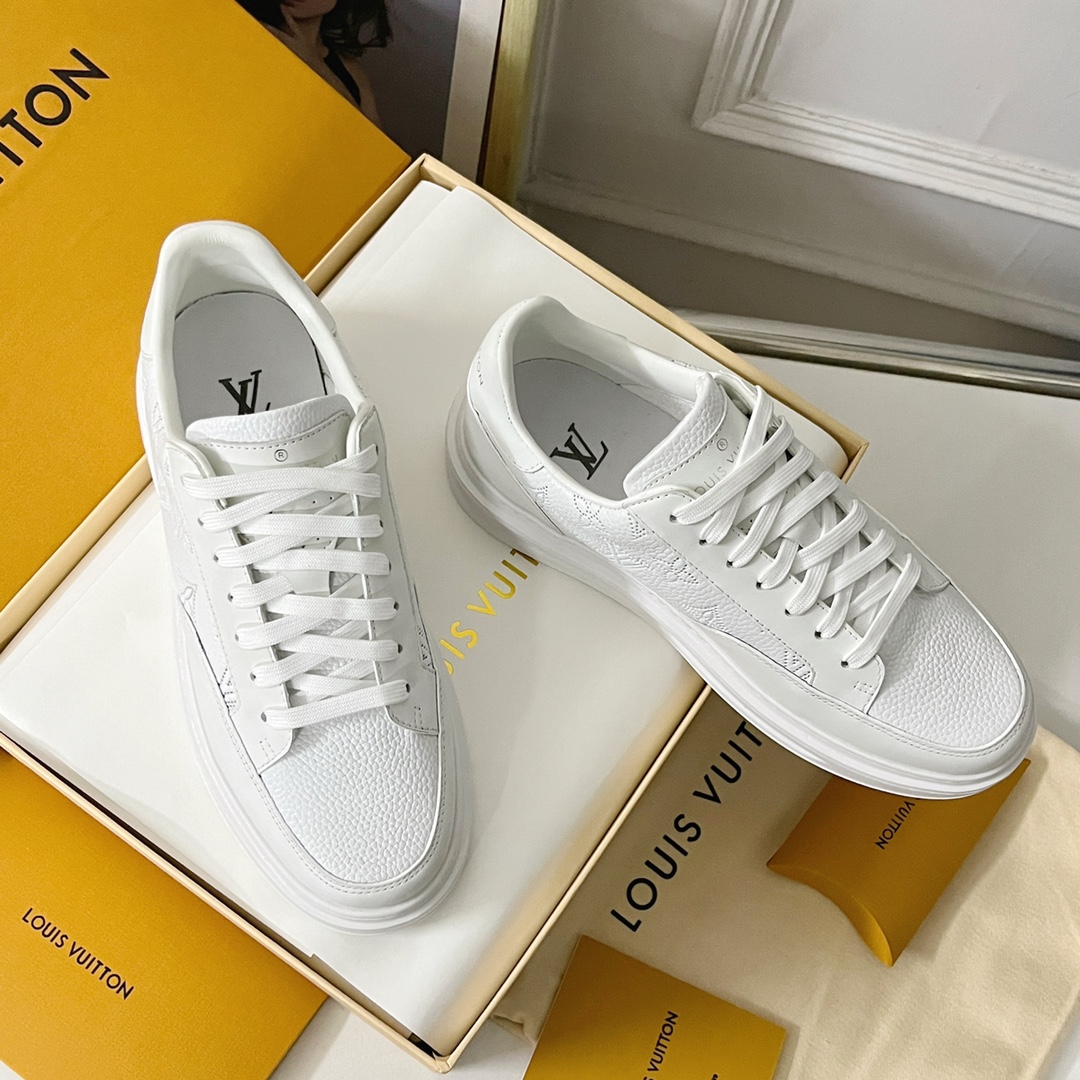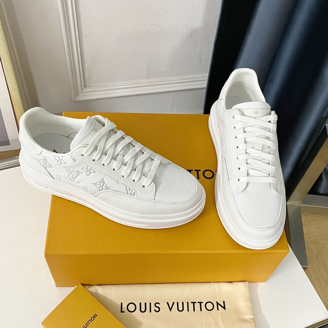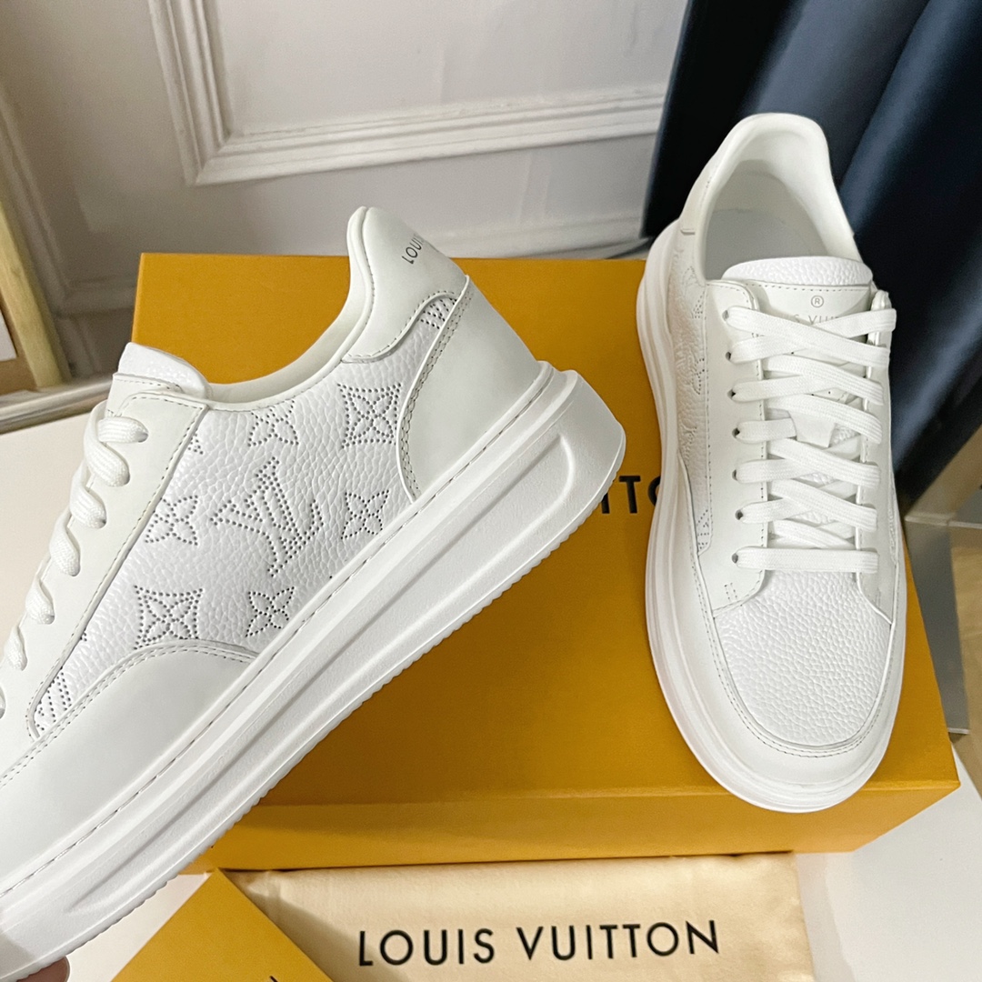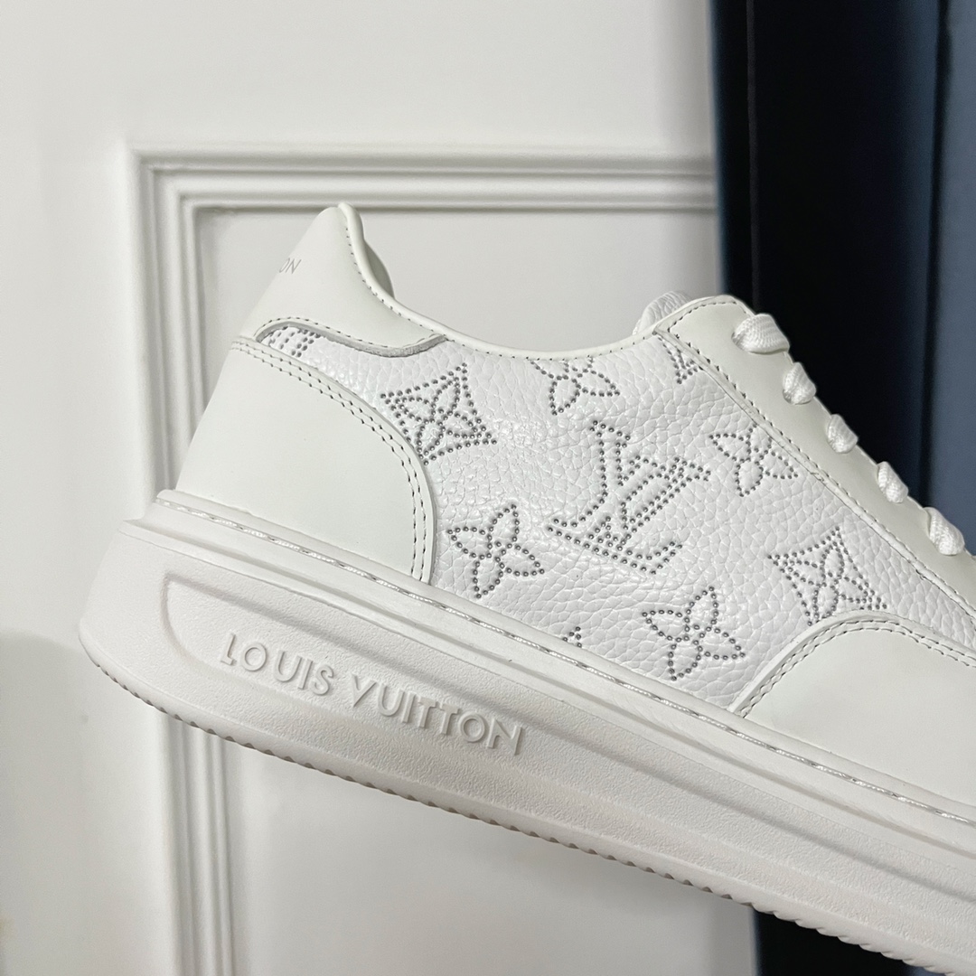 LV Louis Vuitton L Home Donkey Brand Beverly Hills Series Casual Sports Shoes Original Buy Develop Make Make This Beverly Hills sneaker is updated for the season with a Monogram perforation pattern accentuated in supple grained calfskin. The elegant upper is paired with a thick yet lightweight rubber outsole embossed with the Louis Vuitton logo. A padded insole and technical lining take comfort to the next level. Exquisite packaging at the delivery counterππ¦ β Fabric: Original customized top layer cowhide β Lining: Original imported soft sheepskin β Sole: Original molded ultra-light foam sole β Bottom thickness: 4CM β Size: Men’s 38-45