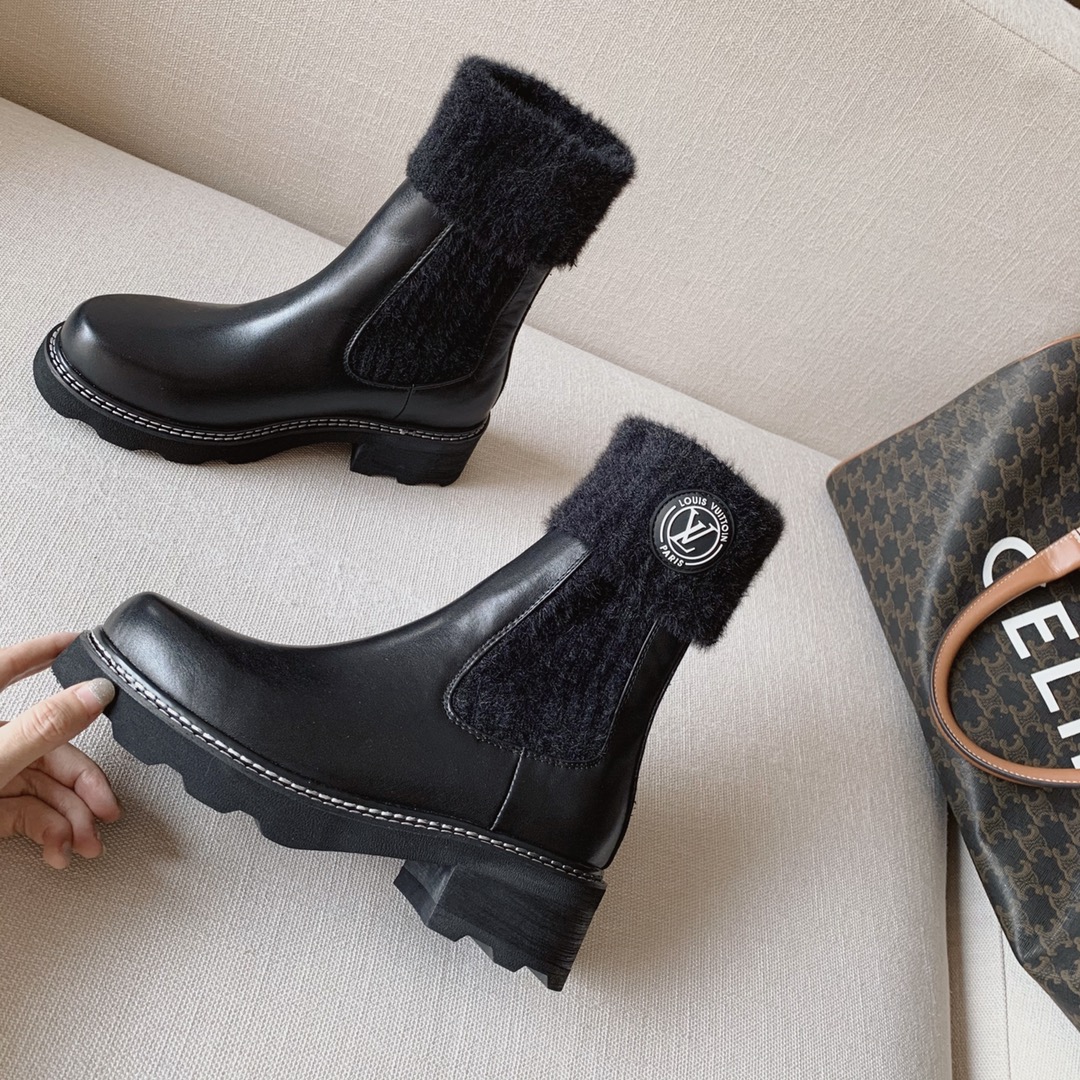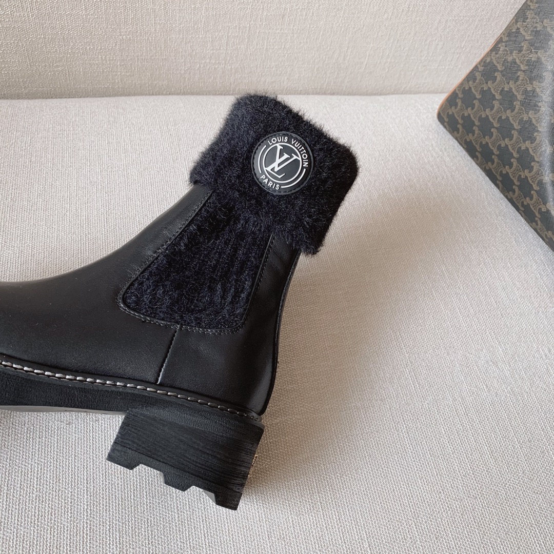 【 Spot payment 】 LV Beaubourg Series New Explosion Short Boots The upper feet are too amazing, a treasure item Really recommend|Super good-looking The wool-knit shaft is designed to flatter the calf There is no doubt about the real texture Developed for more than two months|Sincere work Upper: custom imported calfskin Lining/Insole: Original consistent sheepskin Outsole: The original molded foam outsole. The details and texture are the same as the original version, please look for my quality Size: 35-40 full pack ⚠️40 yards customized non-refundable