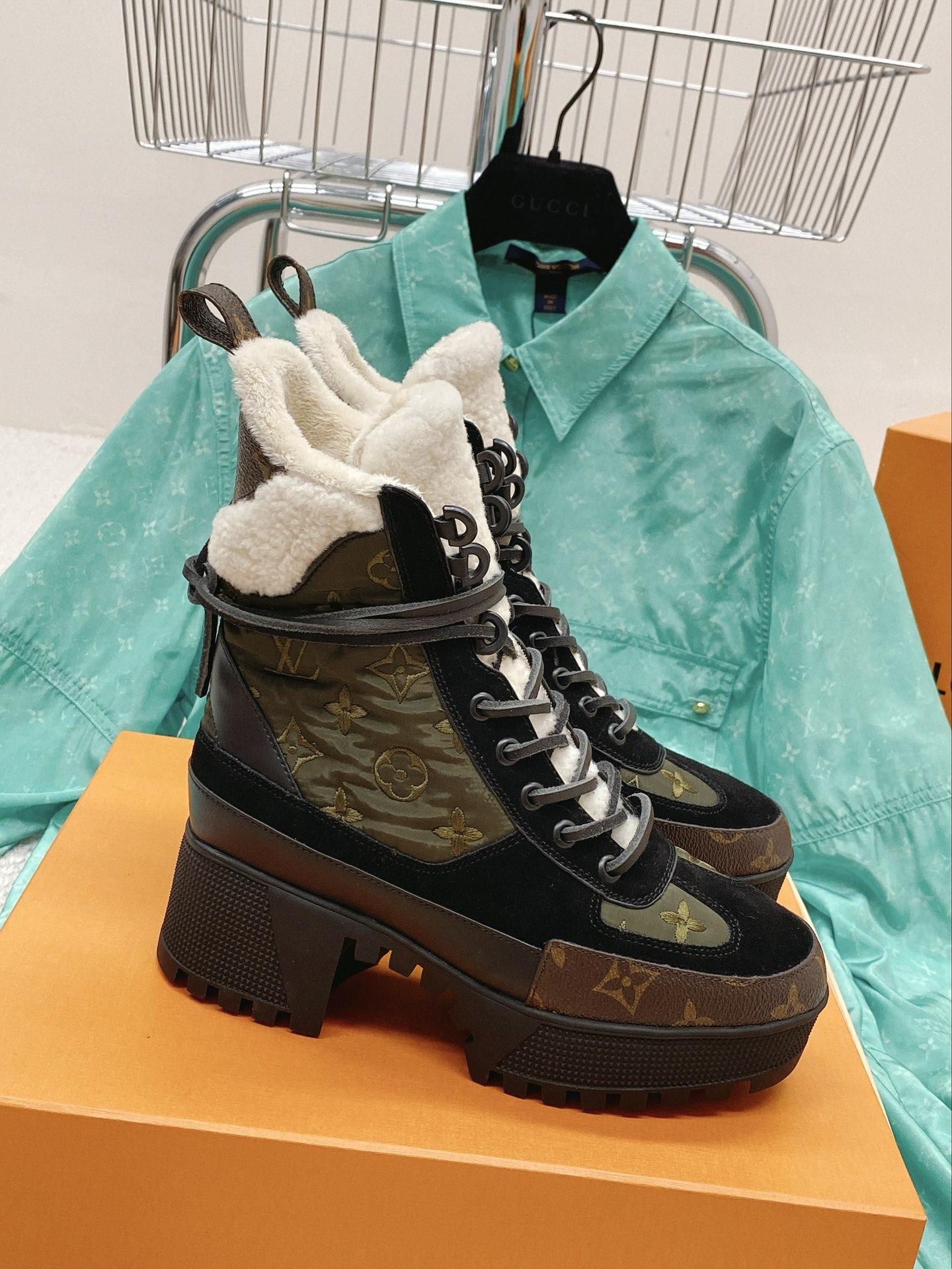 latest color high version in wool L donkey brand 2021 new high-heeled Martin boots beach boots fur boots original one-to-one replica can be compared with details last shape material outsole and other uppers cowhide/velvet electric embroidery presbyopia stitching all wool lining to keep warm Fashionable and atmospheric, the whole shoelaces are cut from genuine leather, with a heel height of 7cm and a water platform of 3.5cm.