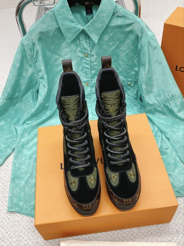 latest color high version L donkey brand new high-heeled Martin boots beach boots original one-to-one replica can be compared with details last shape material outsole and other uppers cowhide/velvet electric embroidery presbyopia stitching cowhide lining the whole shoelace is genuine leather Cut strips with a height of 7cm and a water table of 3.5cm. The atmosphere is thinner and taller, and it is easy to walk without tired feet. 35-40 yards 41