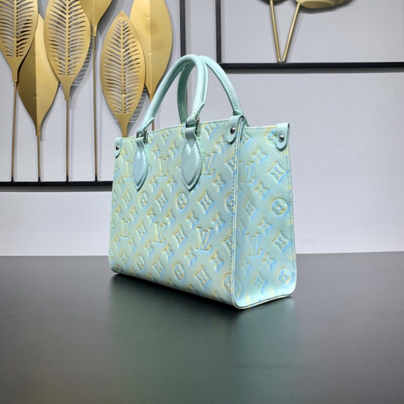 Style number: M46270 The OnTheGo small bag is part of the Summer Stardust capsule collection. Monogram Empreinte leather is combined with a three-step spray painting technique to achieve a unique iridescent luster, a testament to the exquisite craftsmanship of Louis Vuitton. Holds a tablet, wallet and cell phone. 25 x 19 x 11.5 cm (length x height x width)