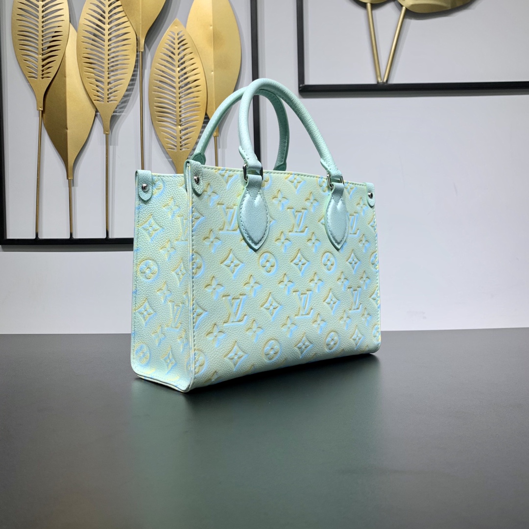 Style number: M46270 The OnTheGo small bag is part of the Summer Stardust capsule collection. Monogram Empreinte leather is combined with a three-step spray painting technique to achieve a unique iridescent luster, a testament to the exquisite craftsmanship of Louis Vuitton. Holds a tablet, wallet and cell phone. 25 x 19 x 11.5 cm (length x height x width)