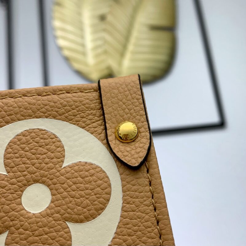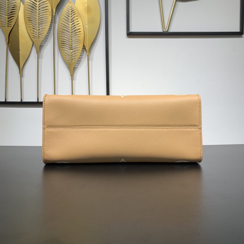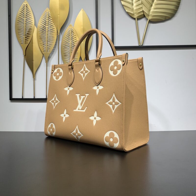 Style number: M46353 This OnTheGo Medium Tote bag is printed with the Medium Monogram pattern and then embossed on soft grained calfskin. Its ample interior can accommodate a laptop and other office supplies, and the long and short handles make it easy to carry by hand or over the shoulder. 35 x 27 x 14 cm (length x height x width)