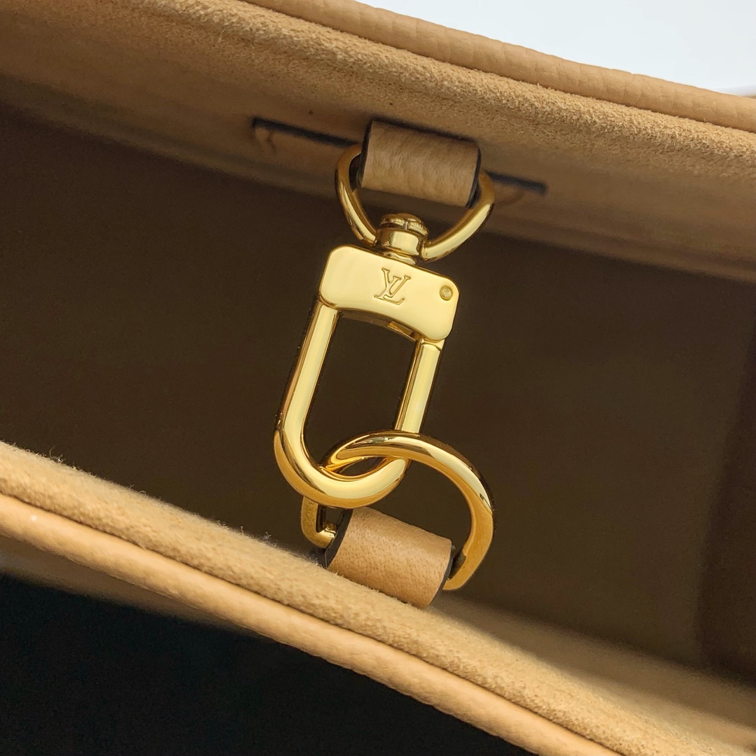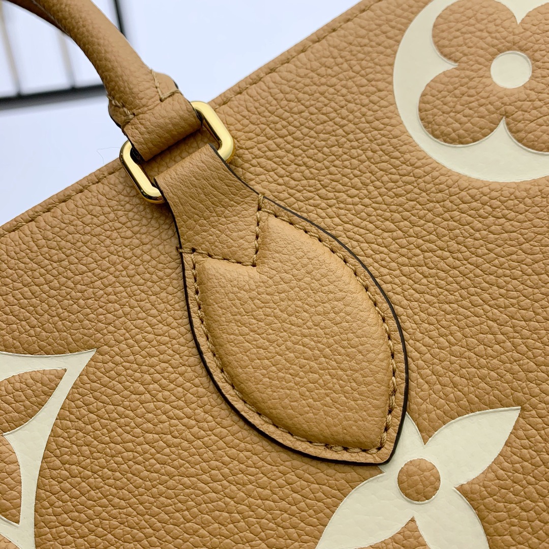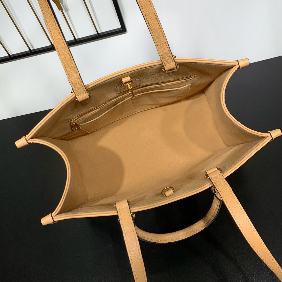 Style number: M46353 This OnTheGo Medium Tote bag is printed with the Medium Monogram pattern and then embossed on soft grained calfskin. Its ample interior can accommodate a laptop and other office supplies, and the long and short handles make it easy to carry by hand or over the shoulder. 35 x 27 x 14 cm (length x height x width)